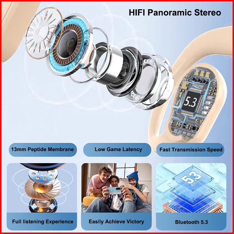 D88 Bluetooth Headset Bluetooth 5.3 Ows Wireless Earphones Hifi Stereo Earbuds Air Conduction Sport Gaming With Mic