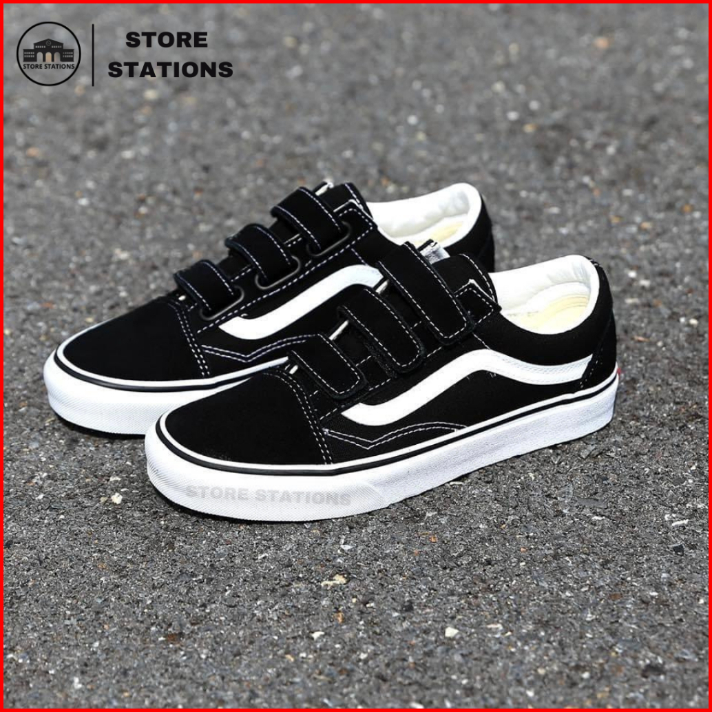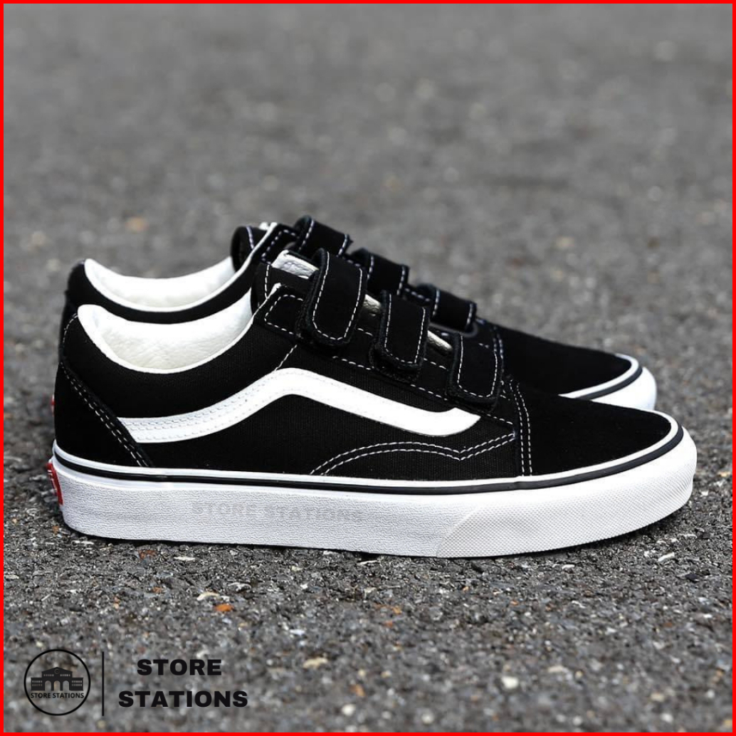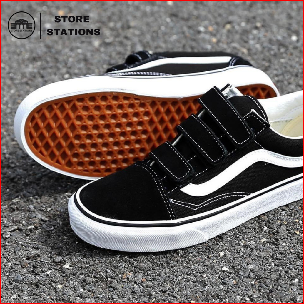 Sepatu Old Skool Velcro Black White Sneakers Oldskool Velcro Hitam Putih Prepet