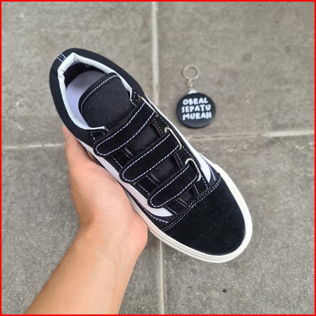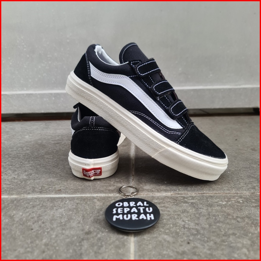 Obral Sepatu Sneakers Old Skool Vault Og Perekat Black White Polos 36-43 Grade Original