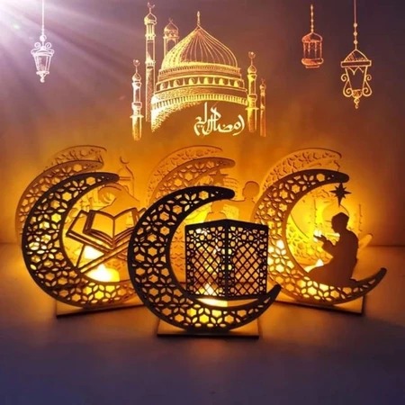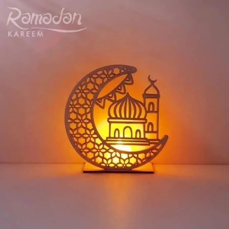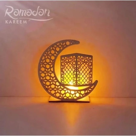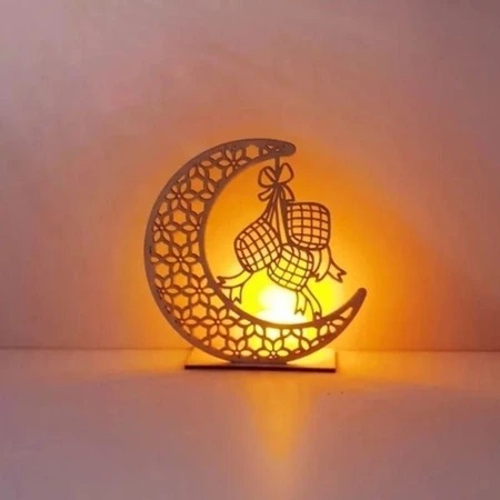 PAJANGAN MUSLIM LED DEKORASI HAMPERS LEBARAN HIASAN LAMPU PAJANGAN KAYU WOODEN CRAFT LIGHT IDUL FITRI LAMPU LED LILIN DE