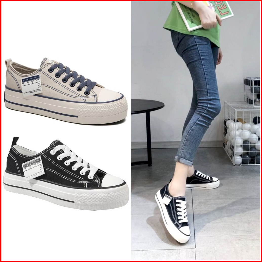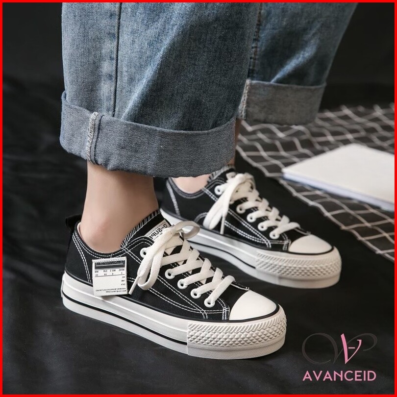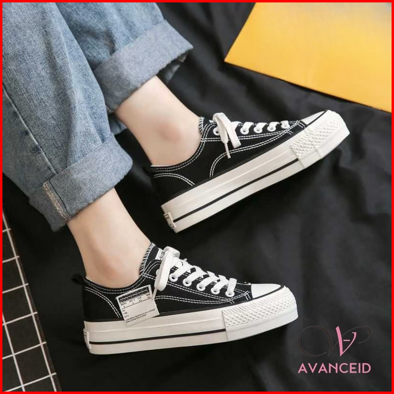 Avanceid 1939 Sepatu Sneakers Wanita Canvas Kerja Sekolah Hitam