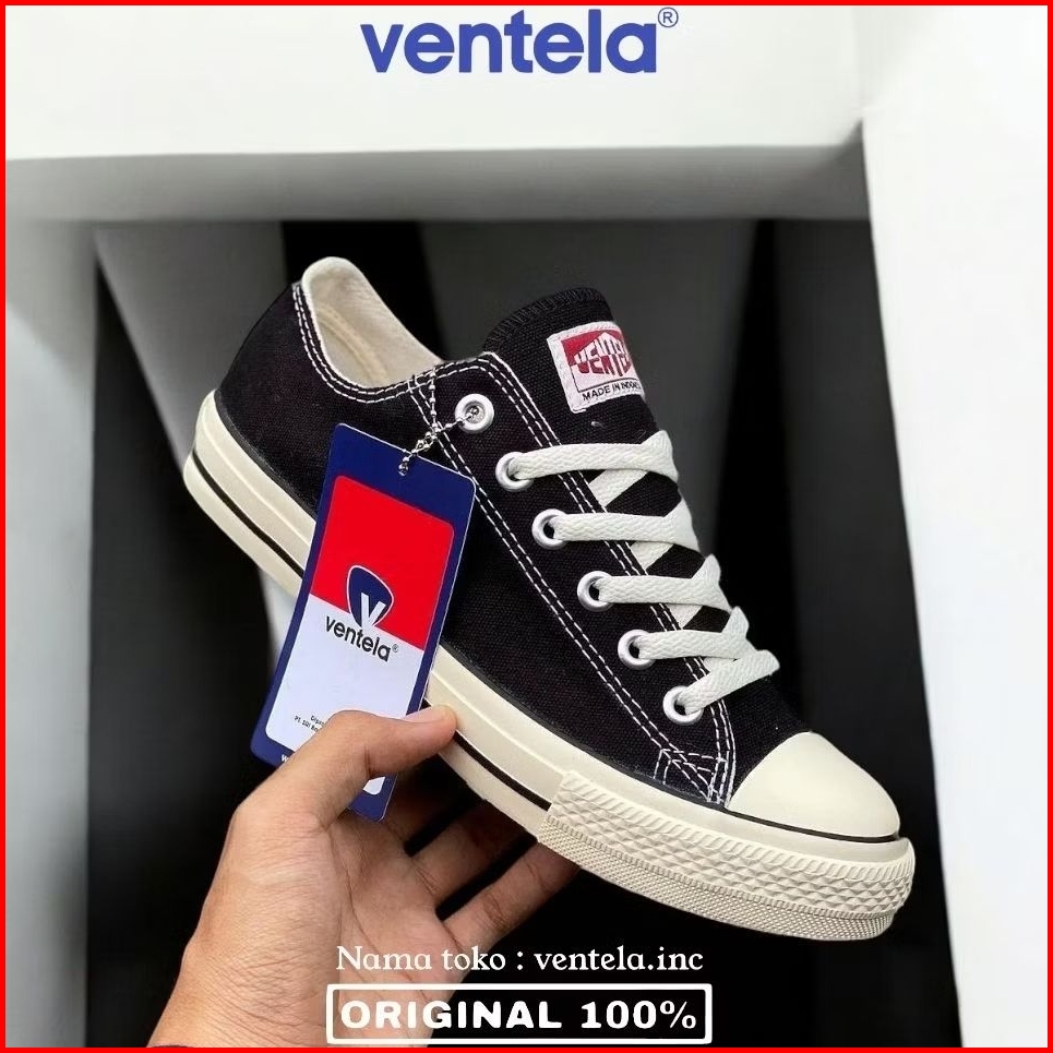 Ventela Ethnic Low Sneakers Hitam Putih Sepatu Casual Pria Wanita Original
