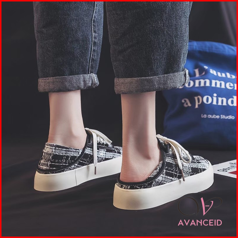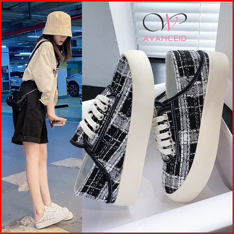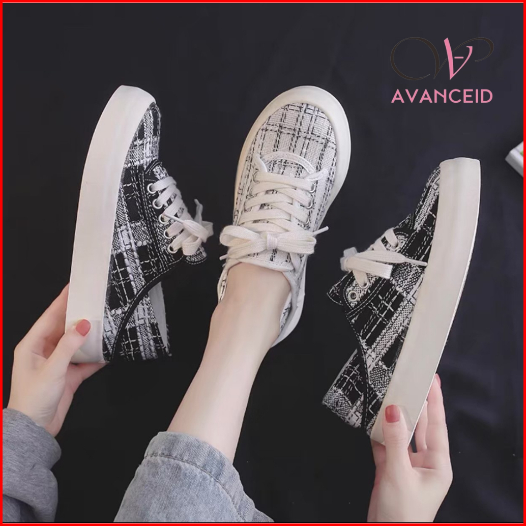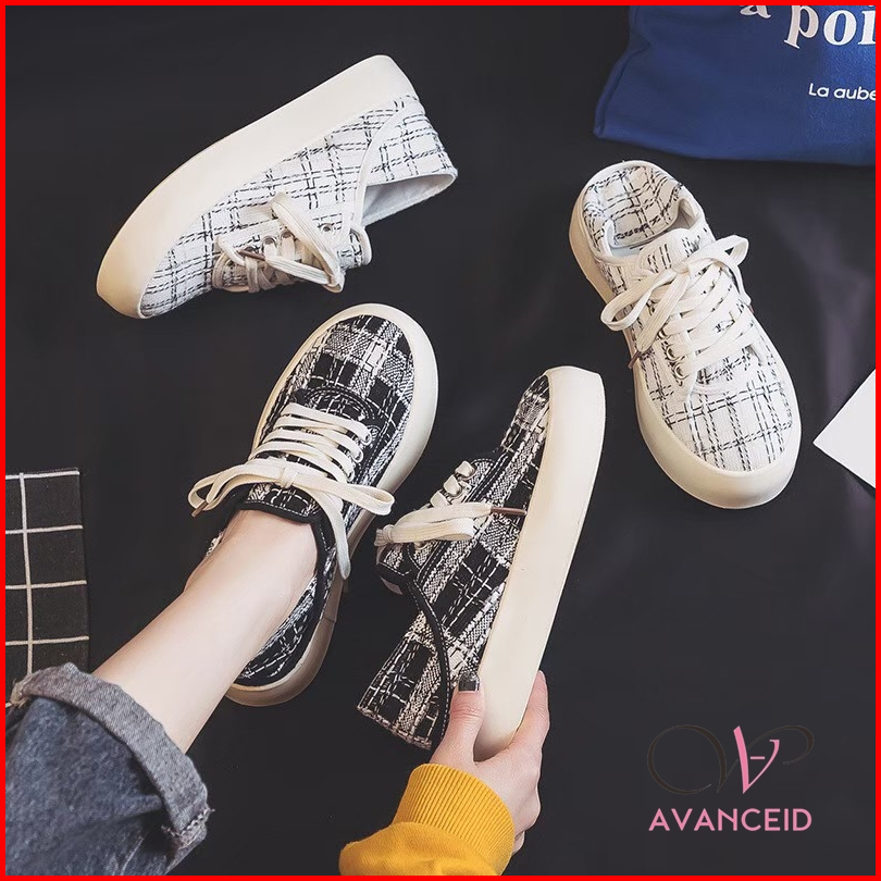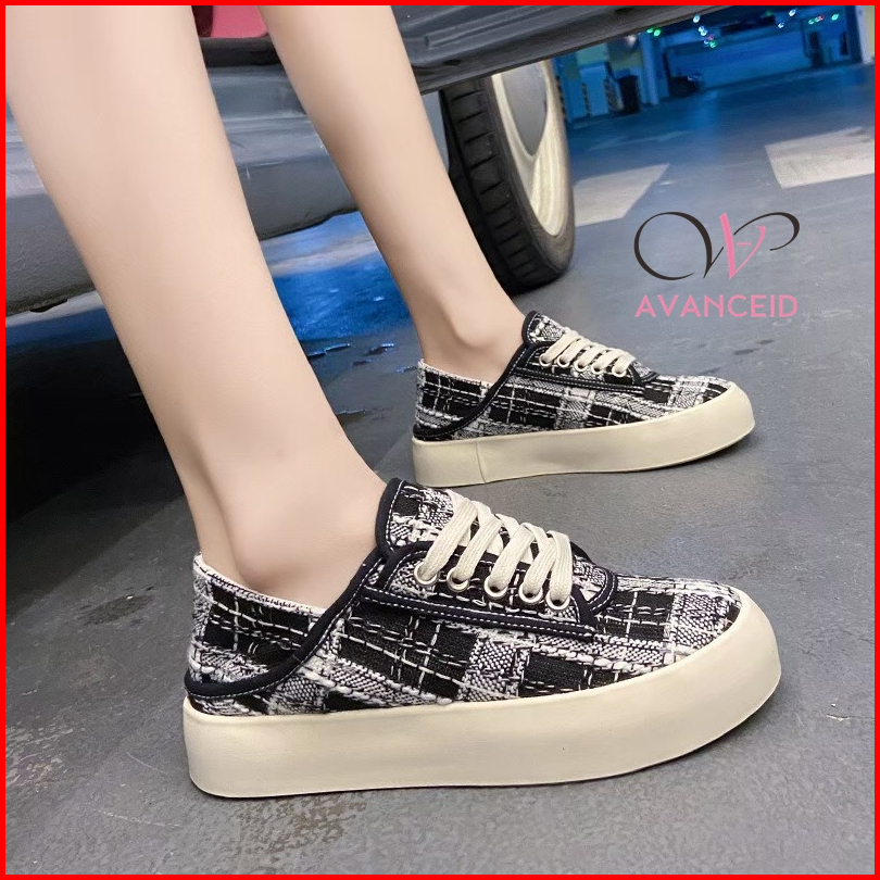 Avanceid 1929 Sepatu Sneakers Wanita Tali Hitam Putih