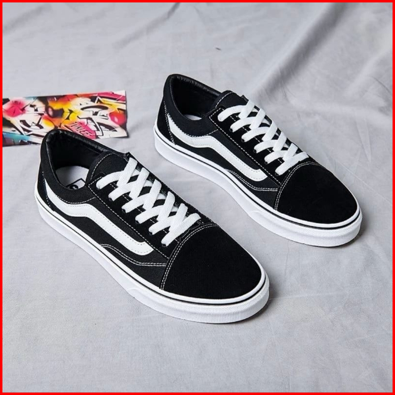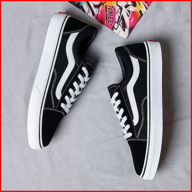 Sepatu Pria Wanita Van5s Old Kasual Sepatu Kuliah Dan Sekolah Sepatu Cowok Cewek Sneakers Full Hitam Sepatu Hitam Putih