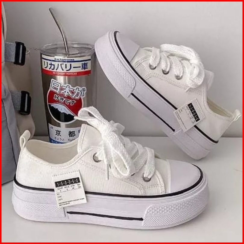 Sepatu Sneakers Wanita Fashion Cewek Korea Style Sepatu Casual Sport Shoes Sepatu Kets Bertali Import Premium