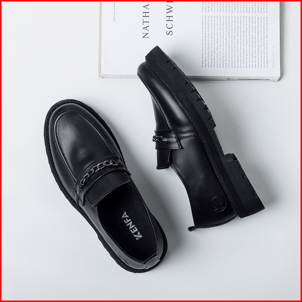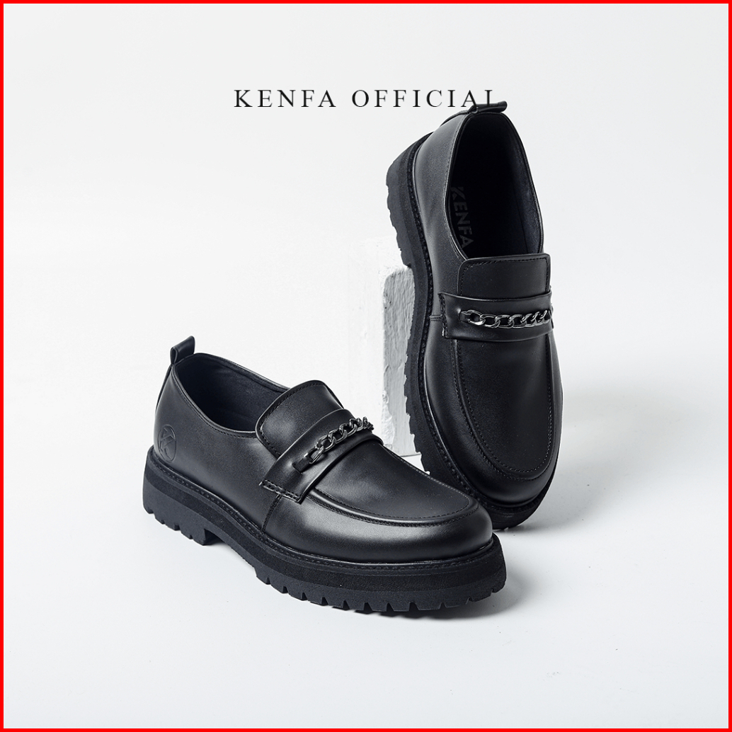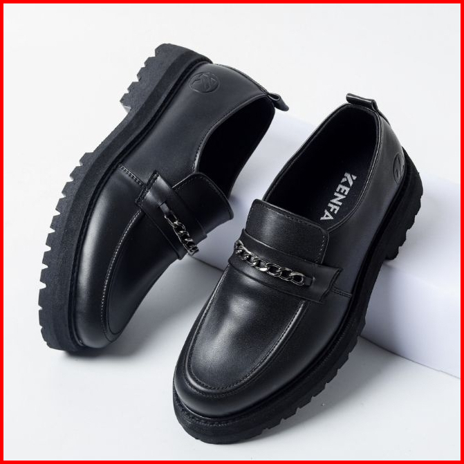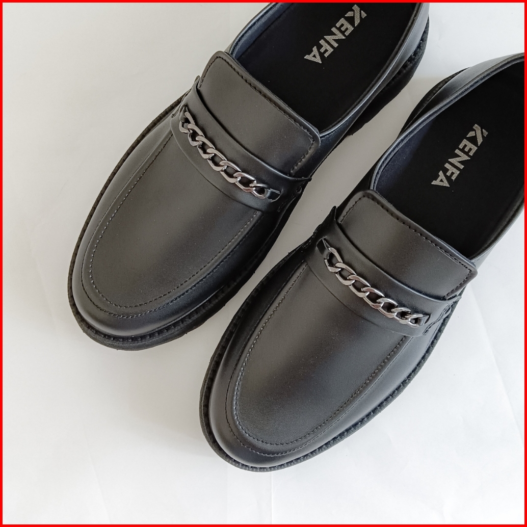 Kenfa - Benze Black Sepatu Formal Slip On Rantai Pria Wanita Pantofel Kuliah Kerja Kantor Tinggi