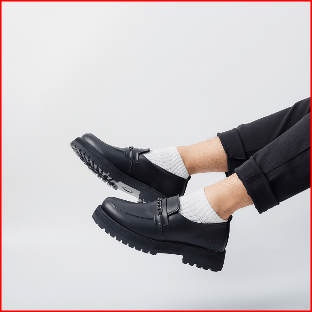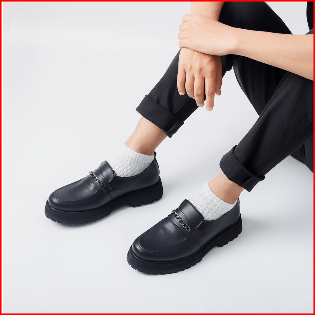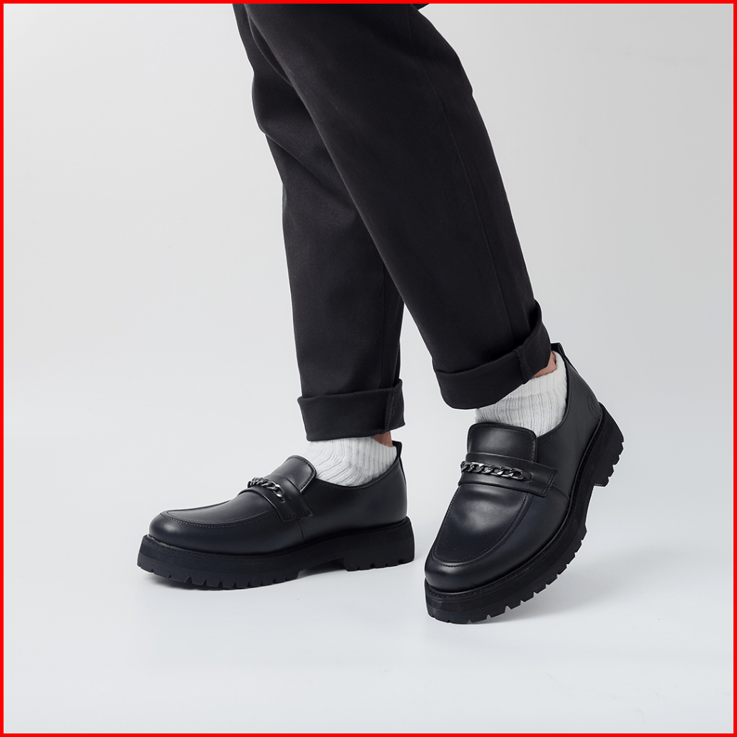 Kenfa - Benze Black Sepatu Formal Slip On Rantai Pria Wanita Pantofel Kuliah Kerja Kantor Tinggi