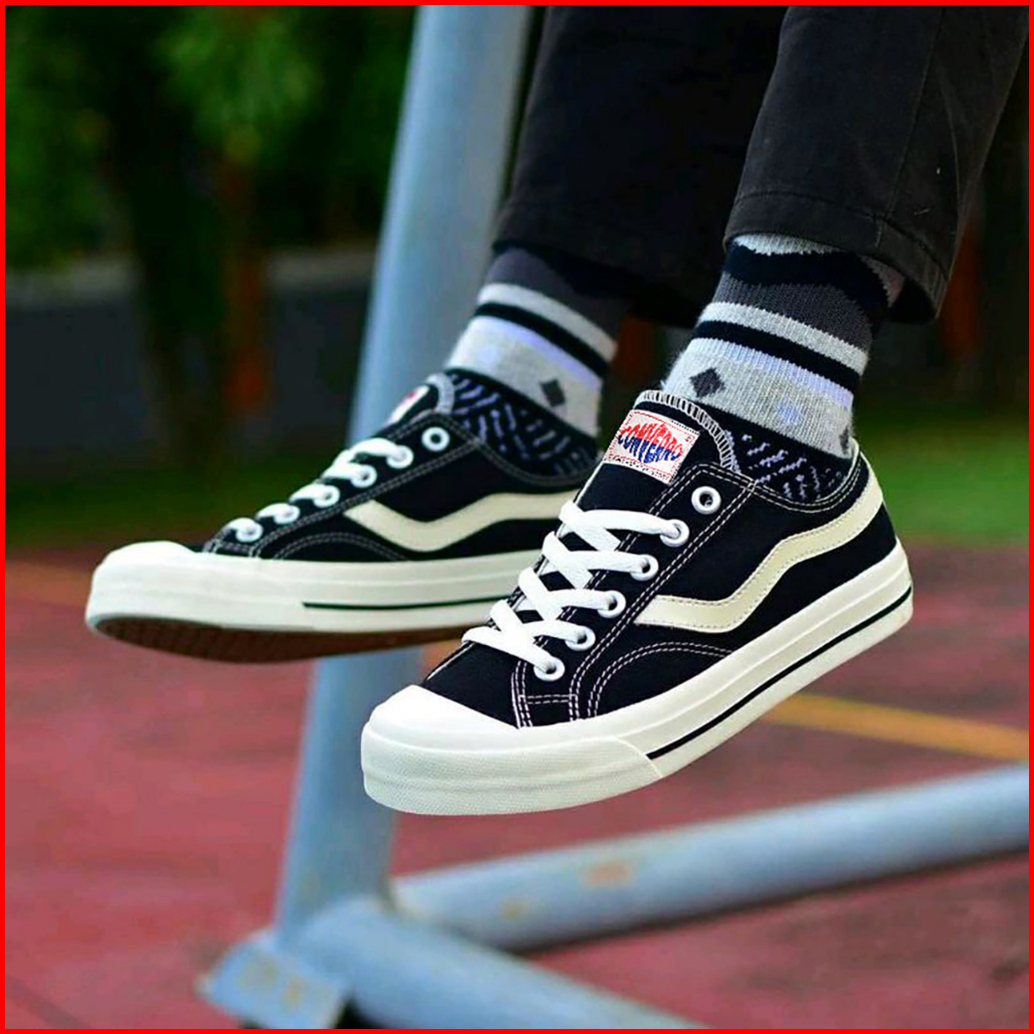 Free Box Kaos Kaki Converro Public Low Black White Natural Sepatu Sneakers Unisex 100 Original