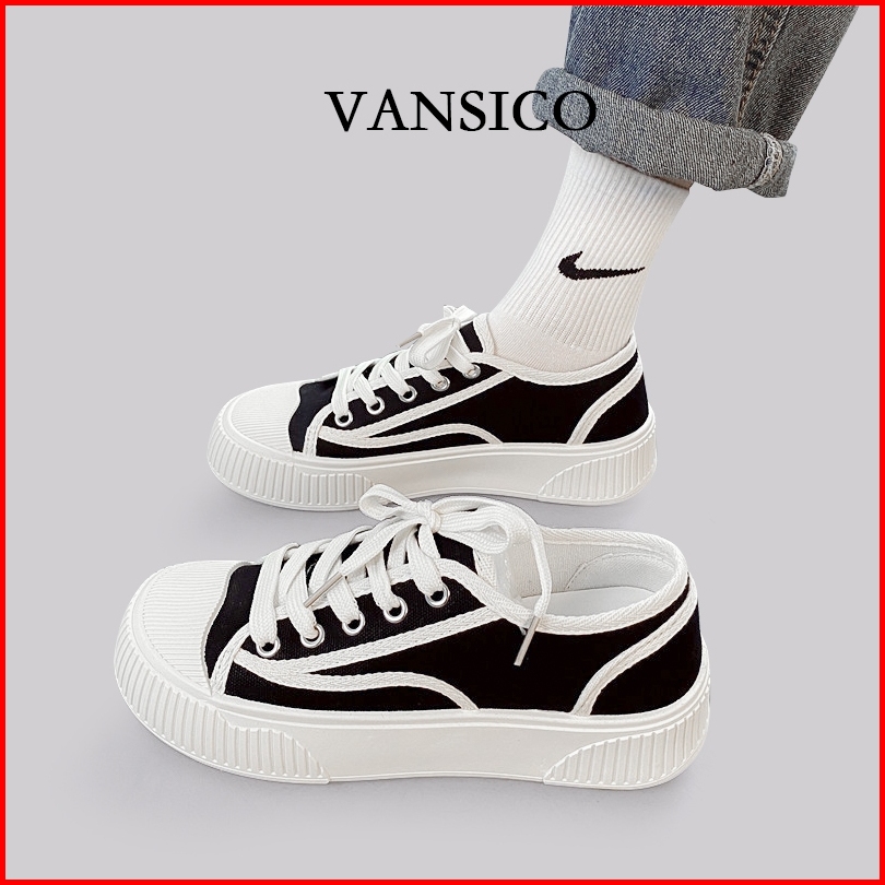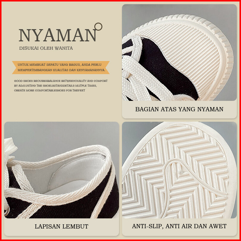 Vansico Sepatu Sneakers Bahan Kanvas Wanita Tali Kekinian Canvas Kets Olahraga Fashion Casual Cewek Premium Sport Runnin
