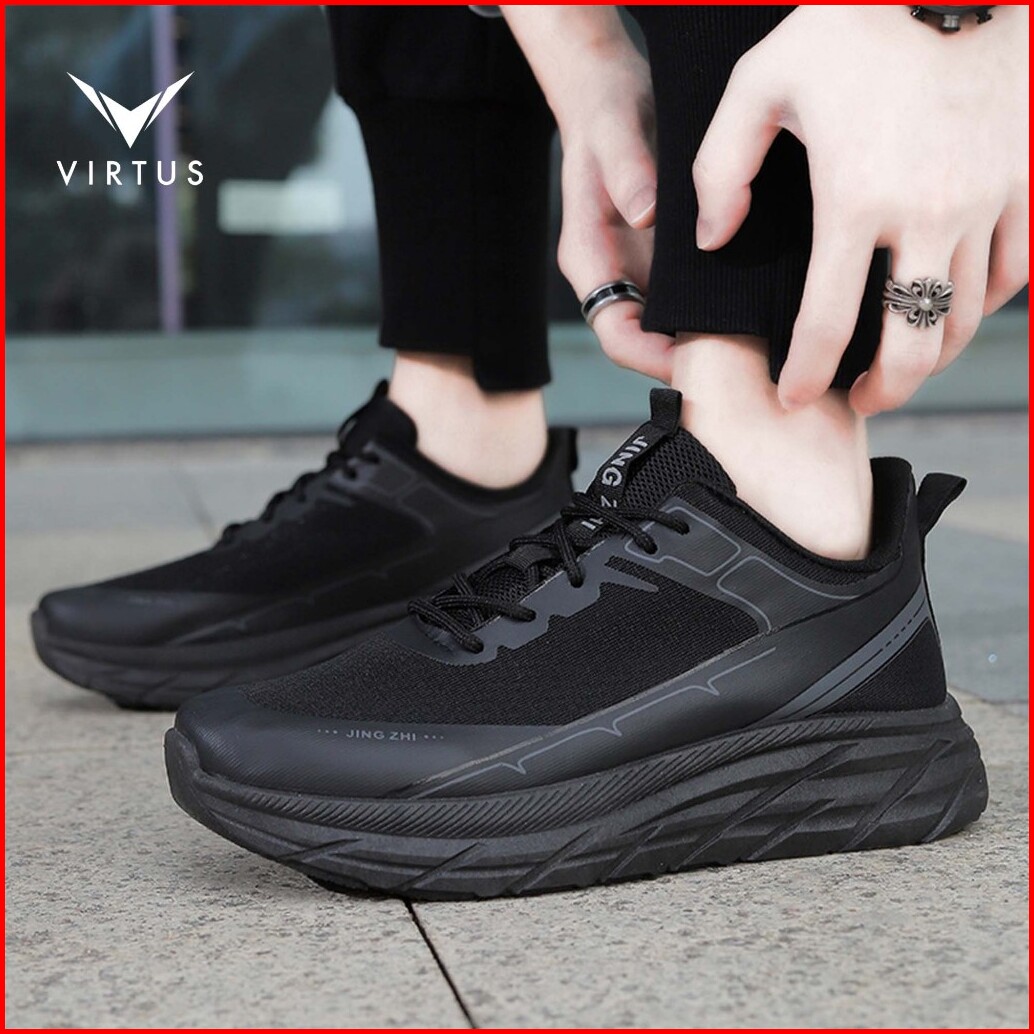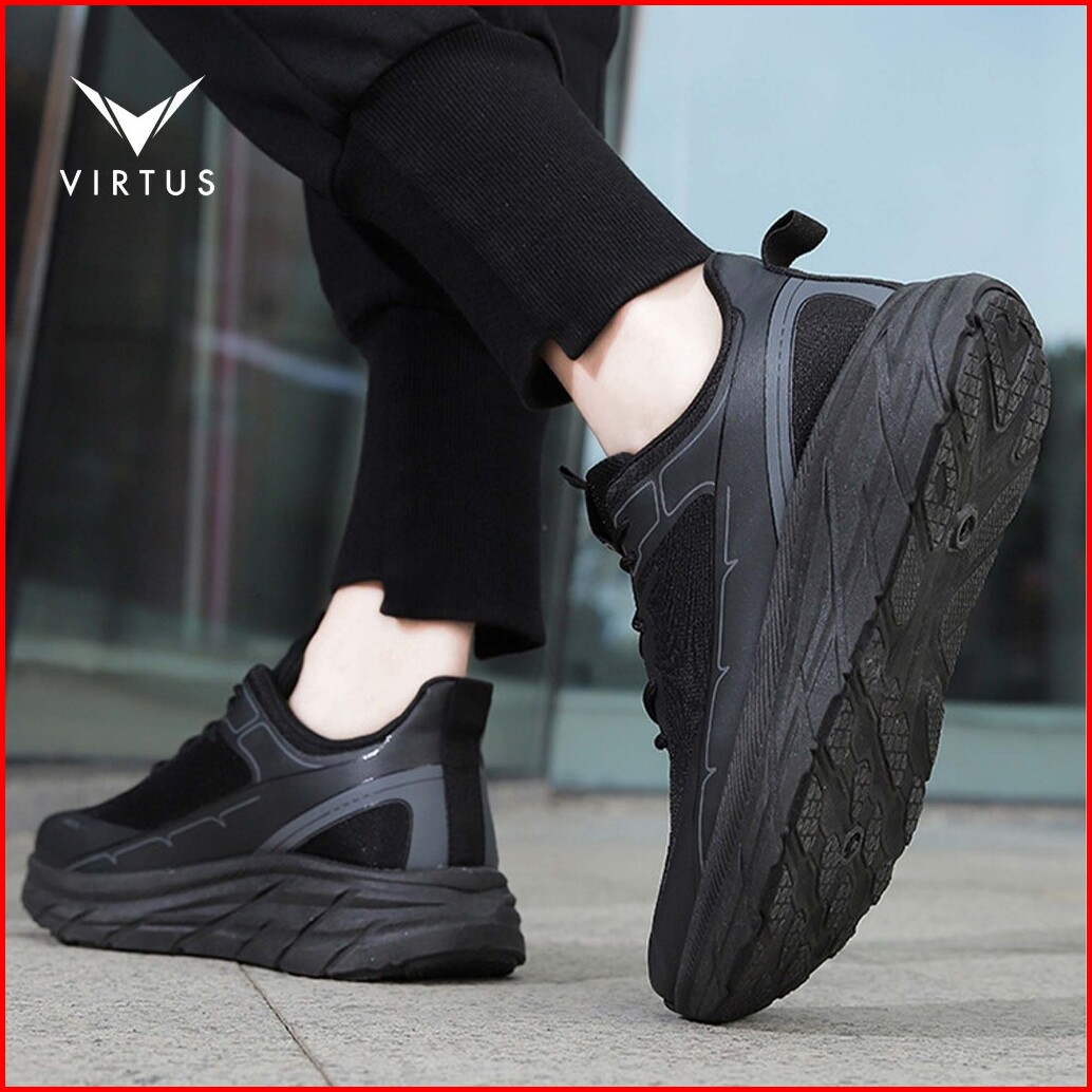 Virtus Wear 39 - 45 Panther Black Hitam - Sepatu Sneakers Pria Olahraga Running Casual Shoes Lari Tali Sekolah Casual