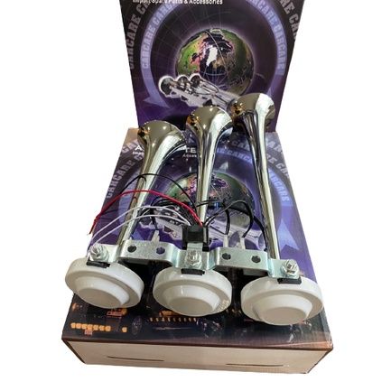 Klakson Telolet 3 Terompet 12V dan 24V 3 Corong Telolet Chrome / Klakson Basuri Merk Airhorntech
