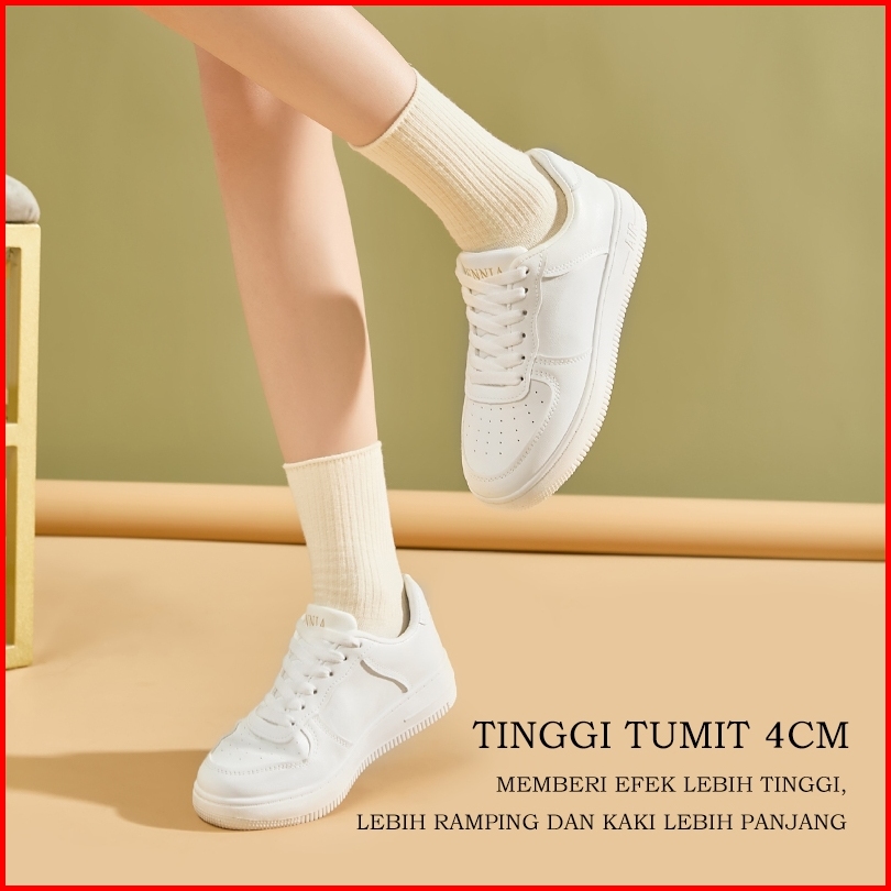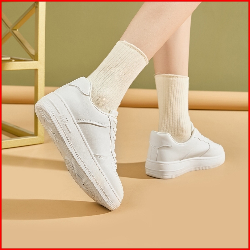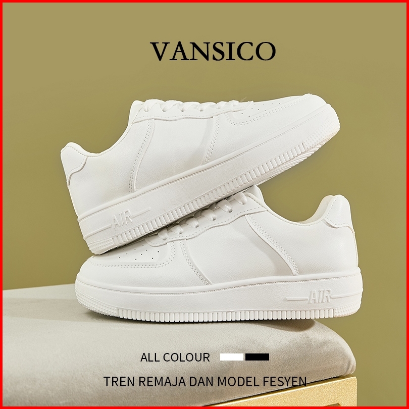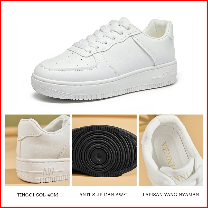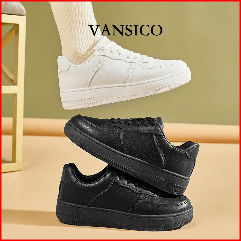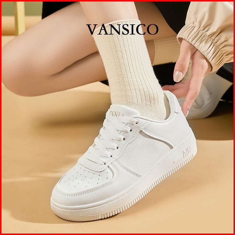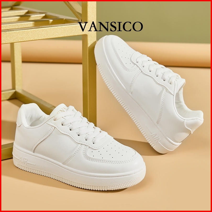Vansico Sepatu Putih Wanita Sneakers Tali Sepatu Sekolah Hitam Putih Polos Sepatu Olahraga Fashion Wanita Sepatu Kets Pu