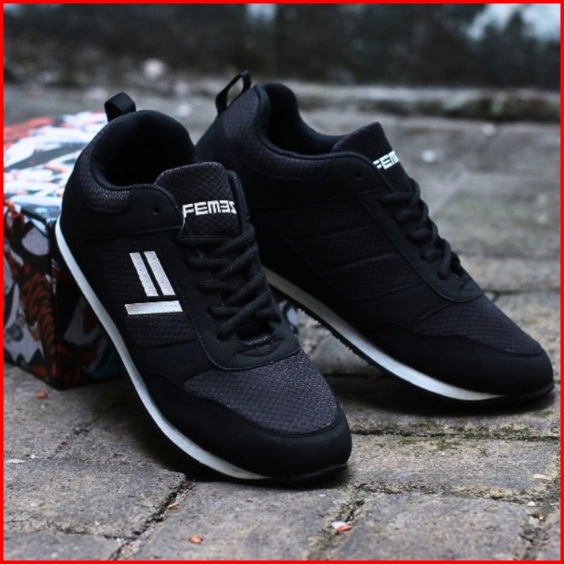 Ukuran 38-48 Sepatu Casual Femez Powgo Pria Sport Hitam Abu Casual Santai Sekolah Kuliah