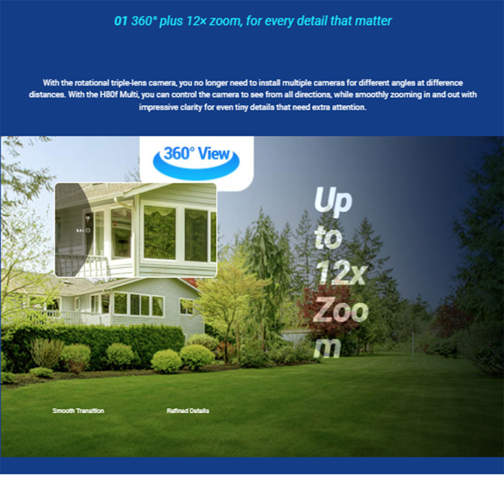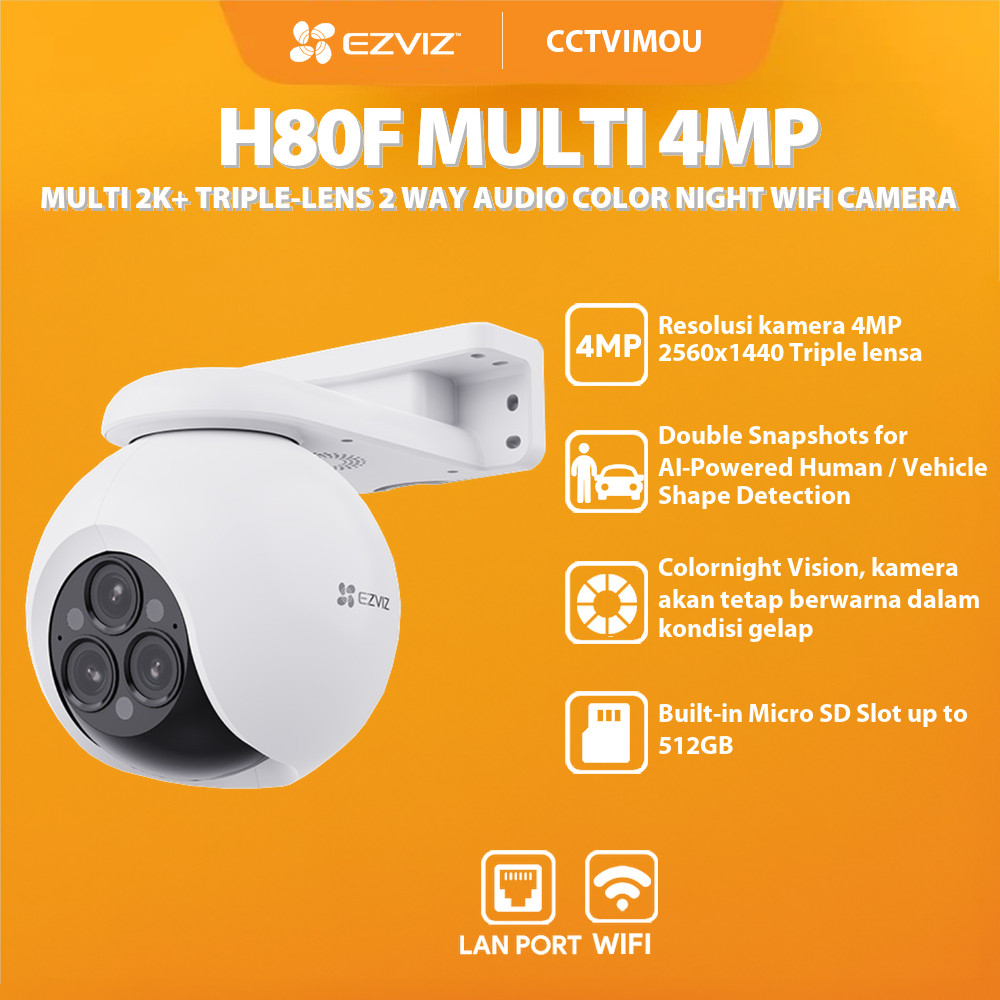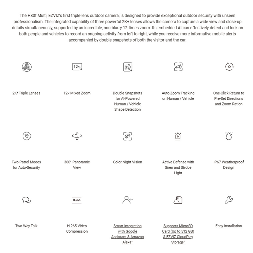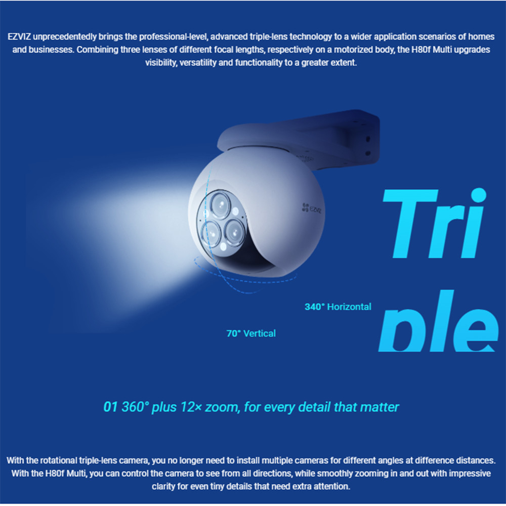 Ezviz H80F Camera CCTV Zoom 12x Multi 4mp Multi 2K+ Triple-Lens 2 Way Audio Color Night Wifi