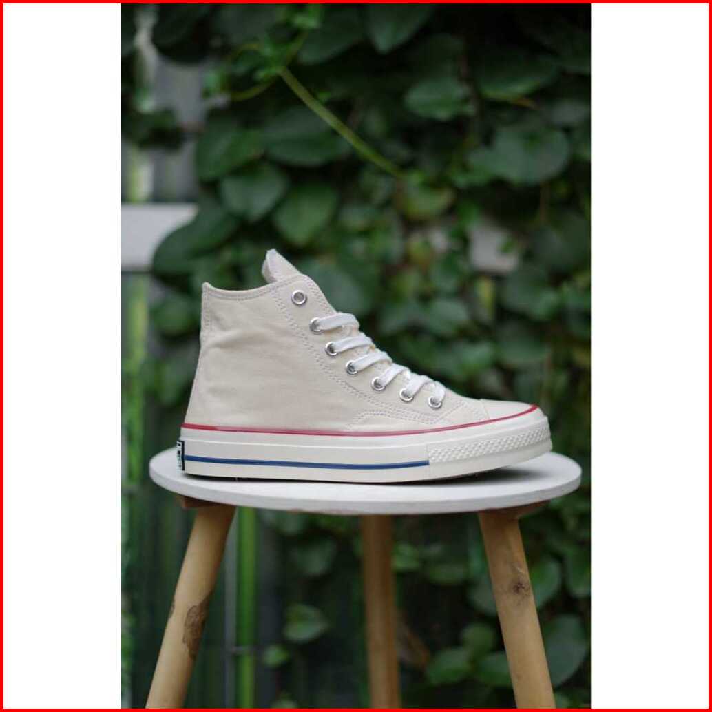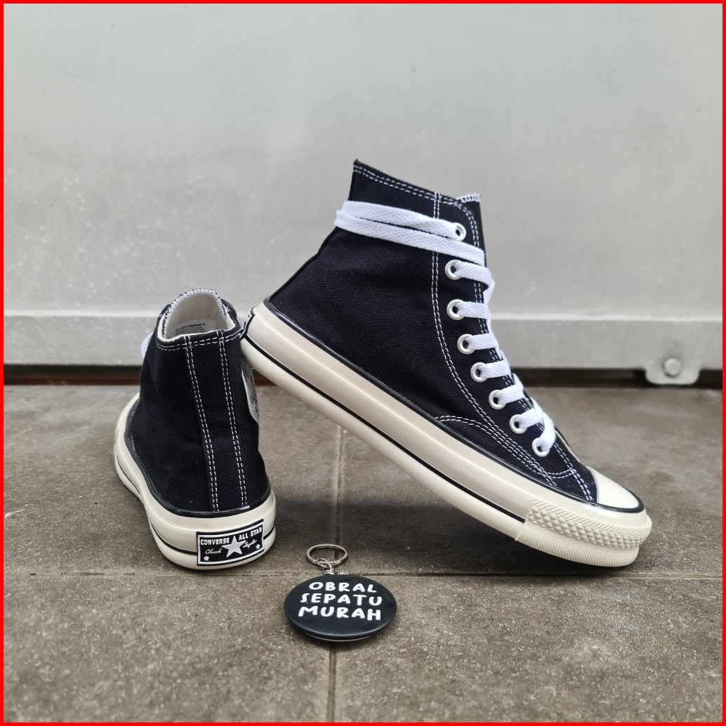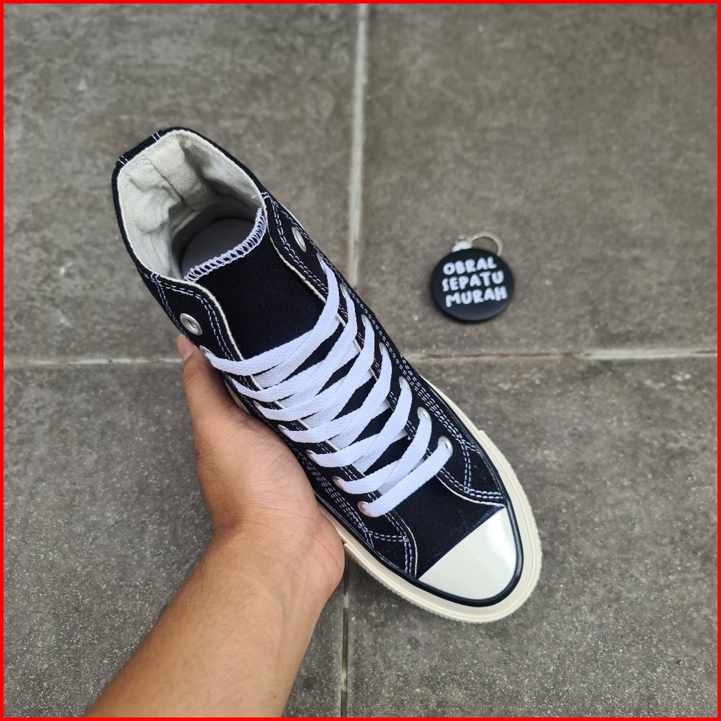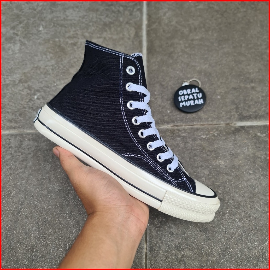 Obral Sepatu Sneakers 70s High Black White Sol Glossy 36-43 Sepatu Sekolah Hitam Putih