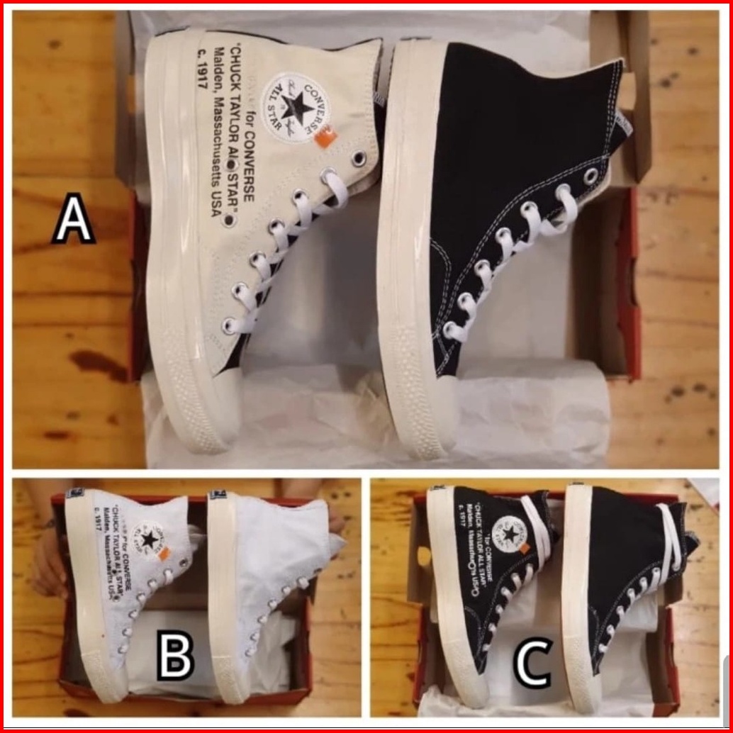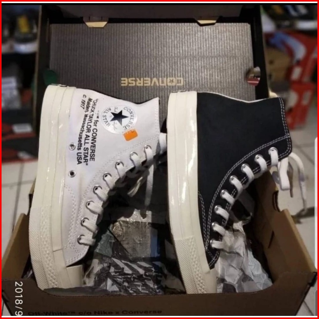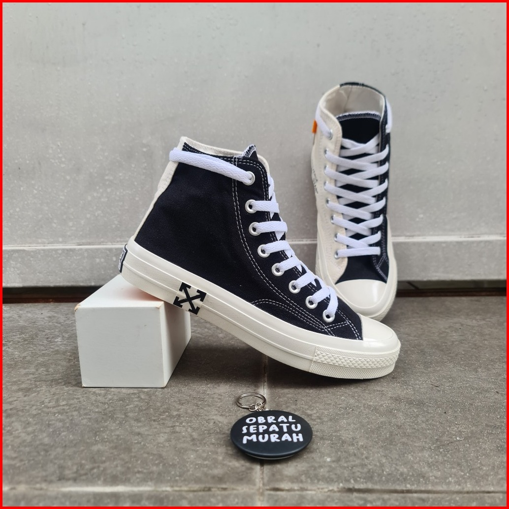 Obral Sepatu Sneakers Cv 70s X Of White Glossy High Black White 38-43 Sol Glossy