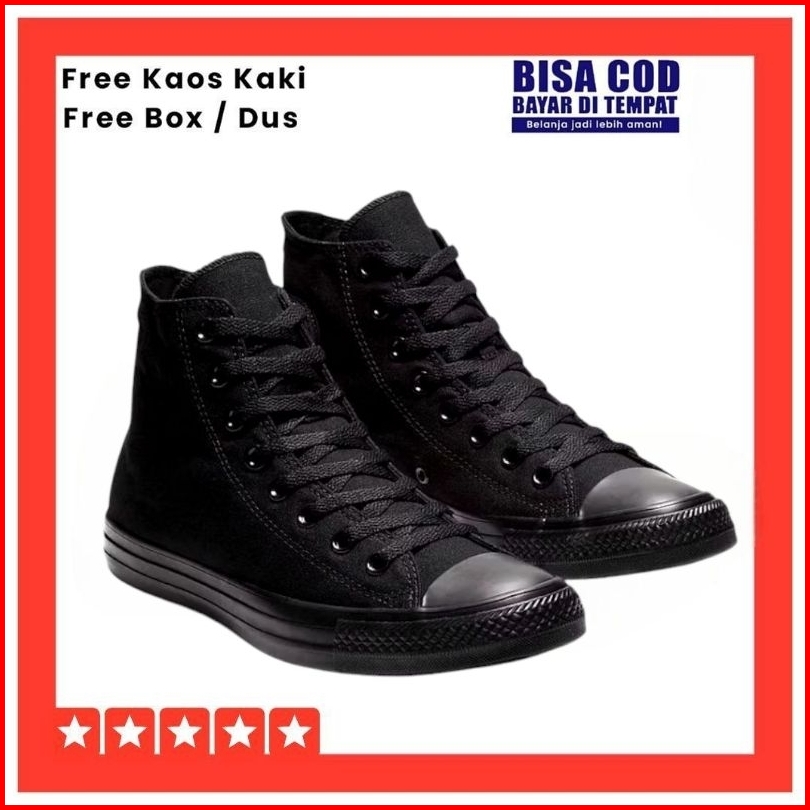 Sepatu Converse All Star Tinggi High Boot Black Sepatu Sekolah Hitam Pria Wanita