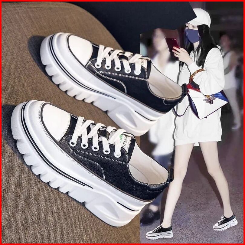 Sepatu Wanita Canvas Bertali Fashion Import Korea Sepatu Sneakers Wanita Hak Tinggi Fashionable