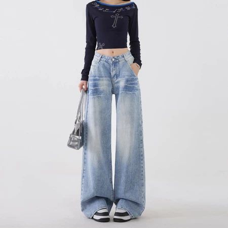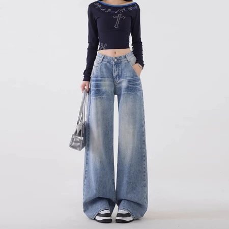 Celana Panjang Wanita Highwaist Jeans Retro Loose Pants