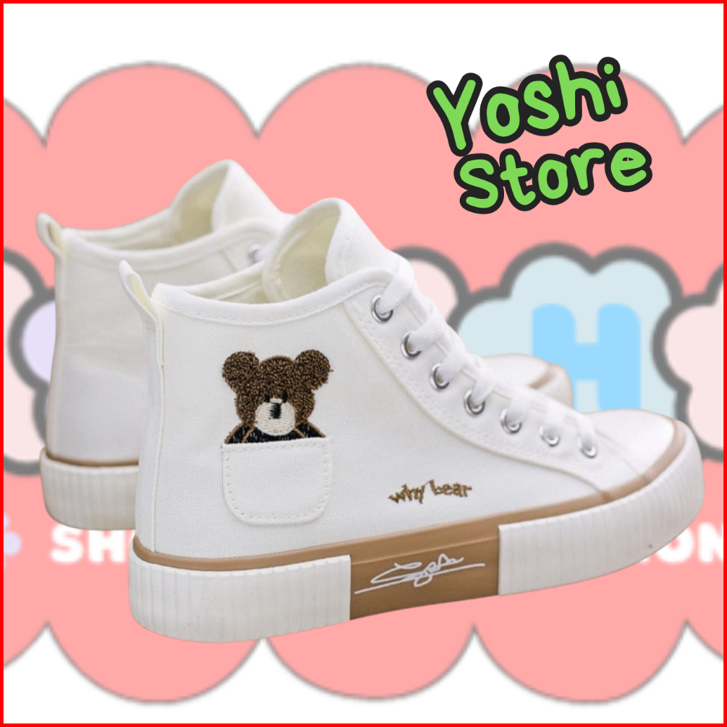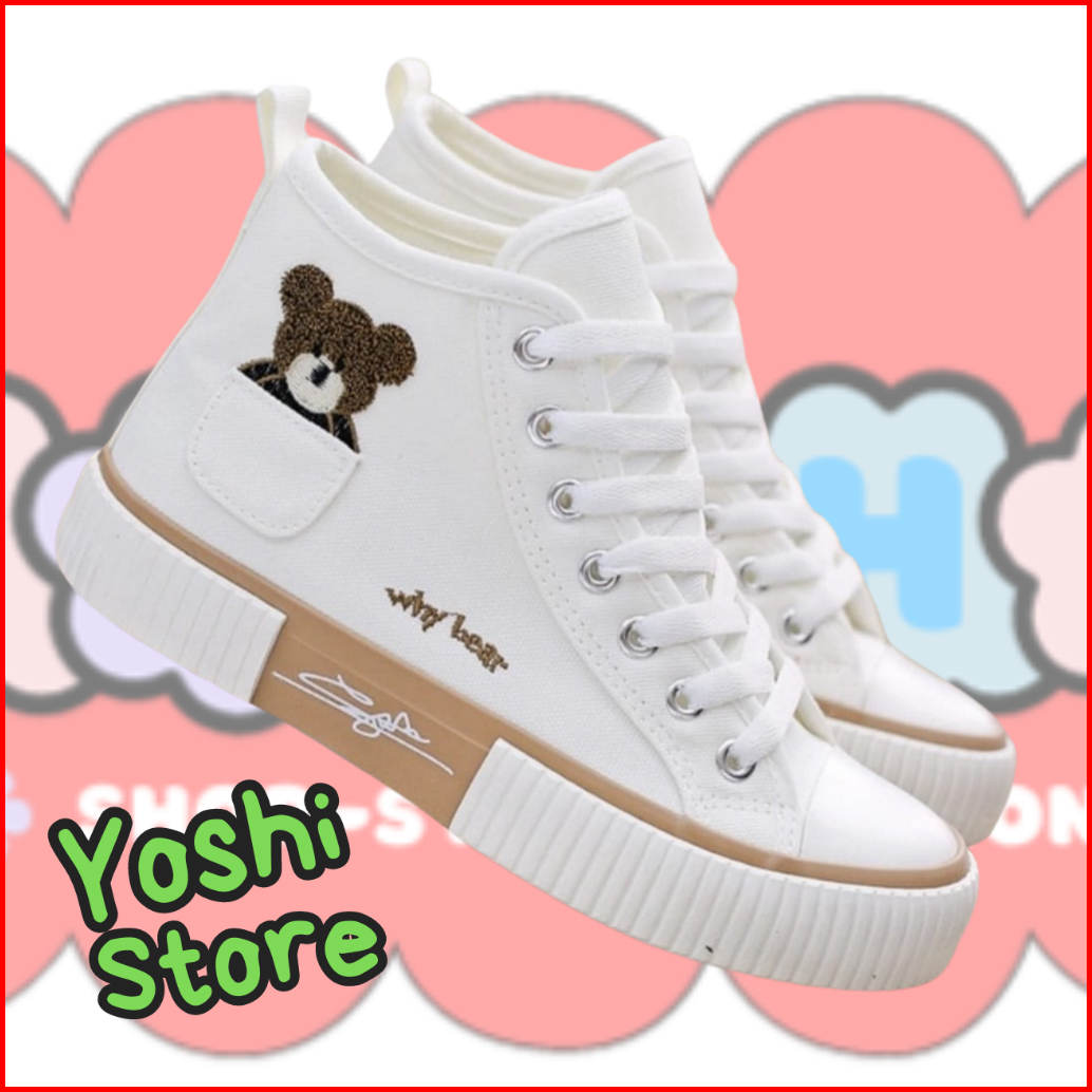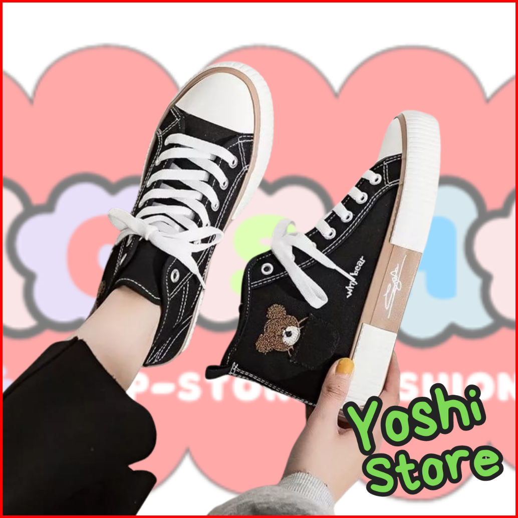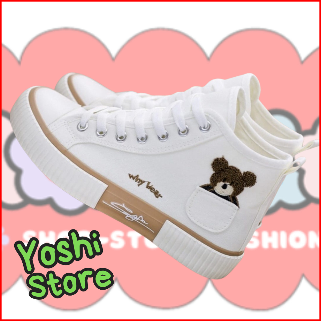 Sepatu Wanita Sneakers Bears Imut As168 Kanvas Sintetis
