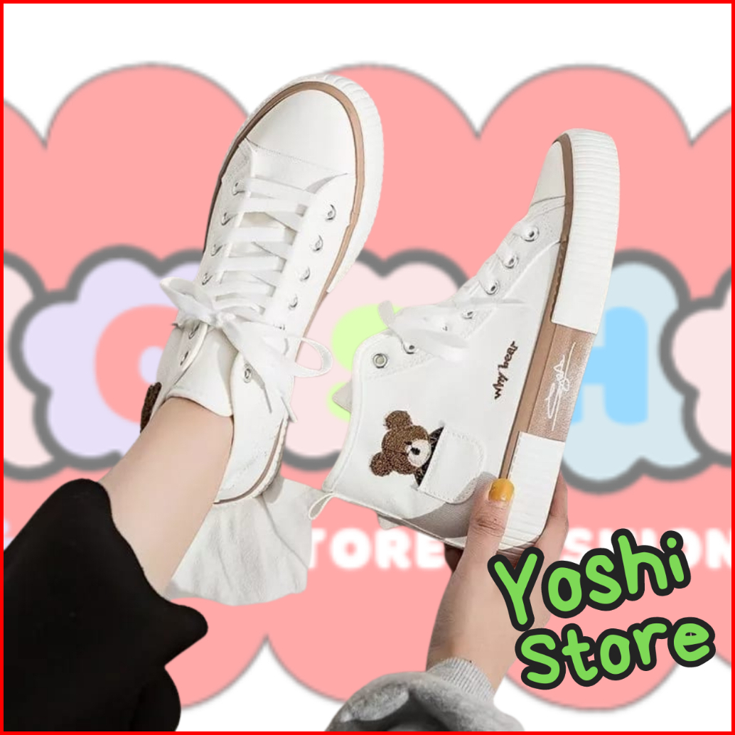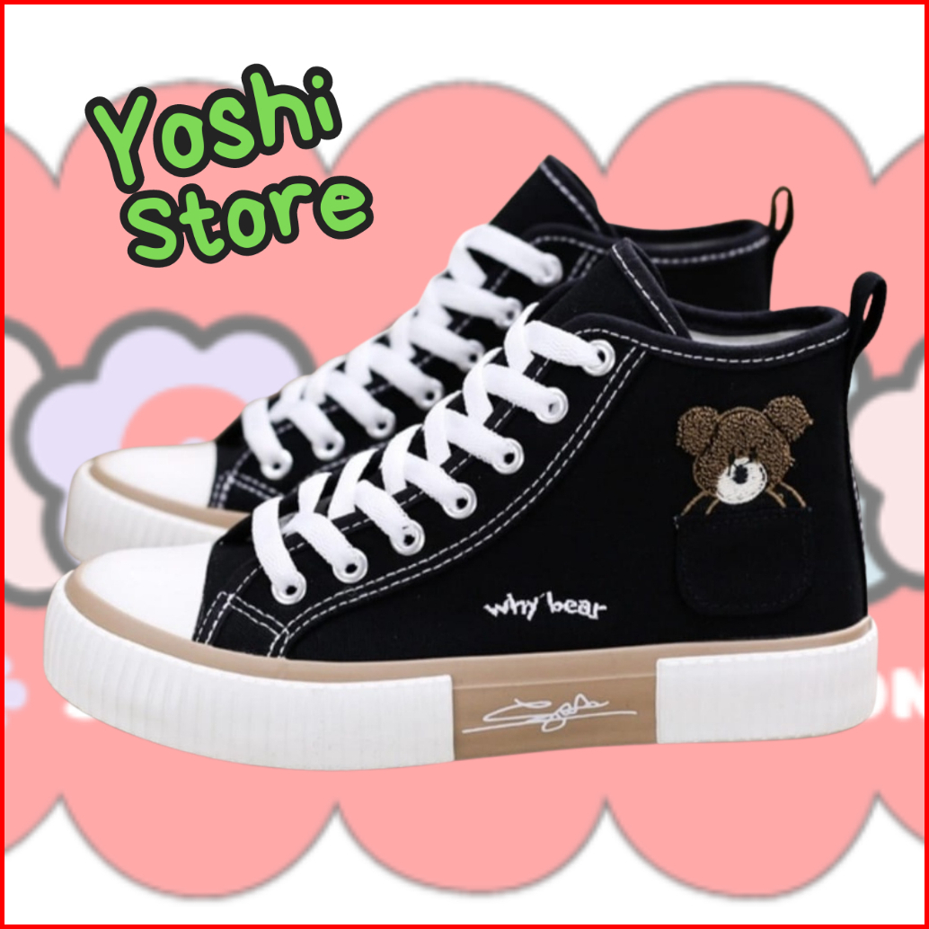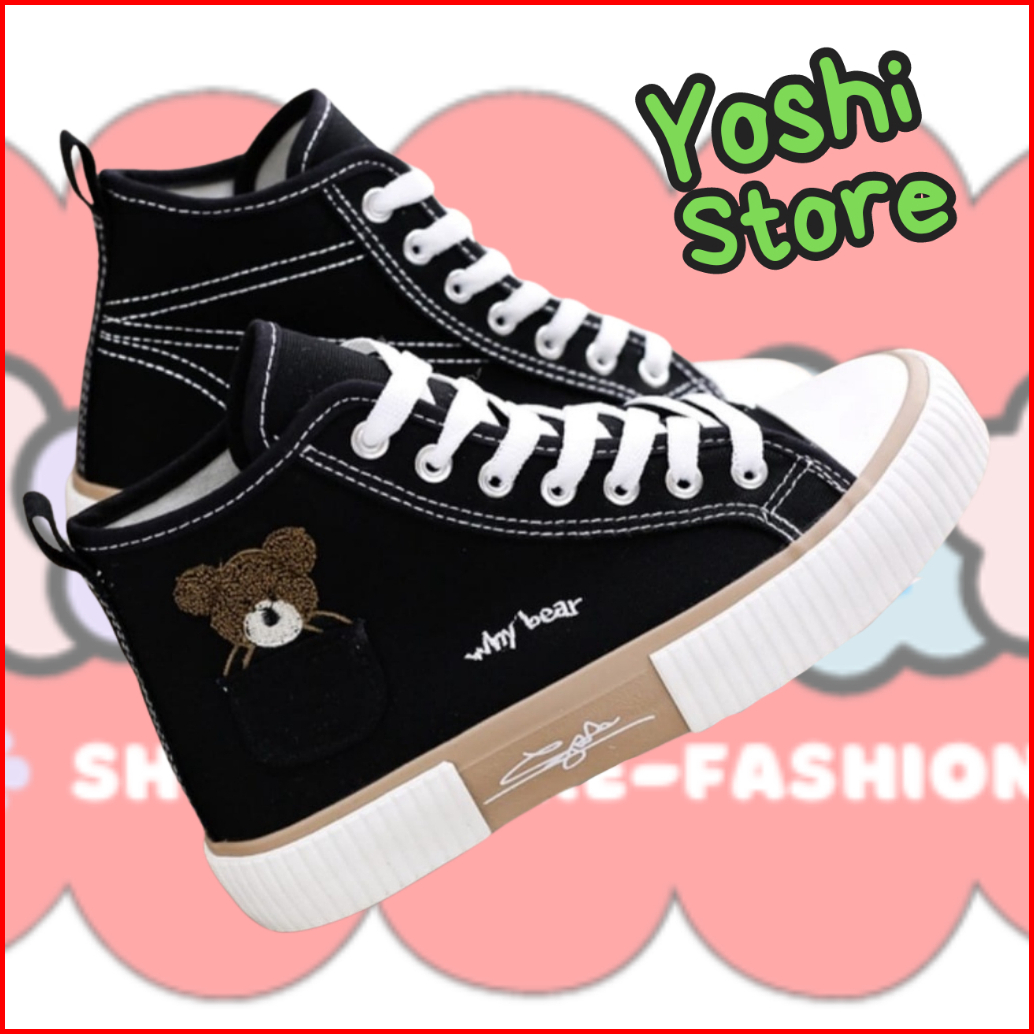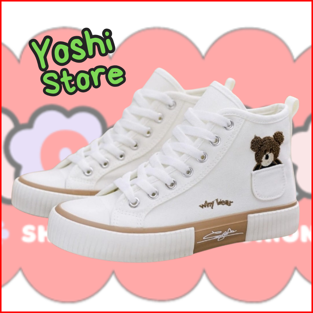Sepatu Wanita Sneakers Bears Imut As168 Kanvas Sintetis