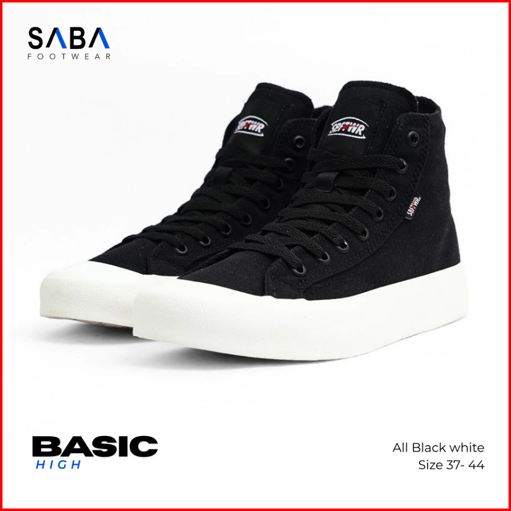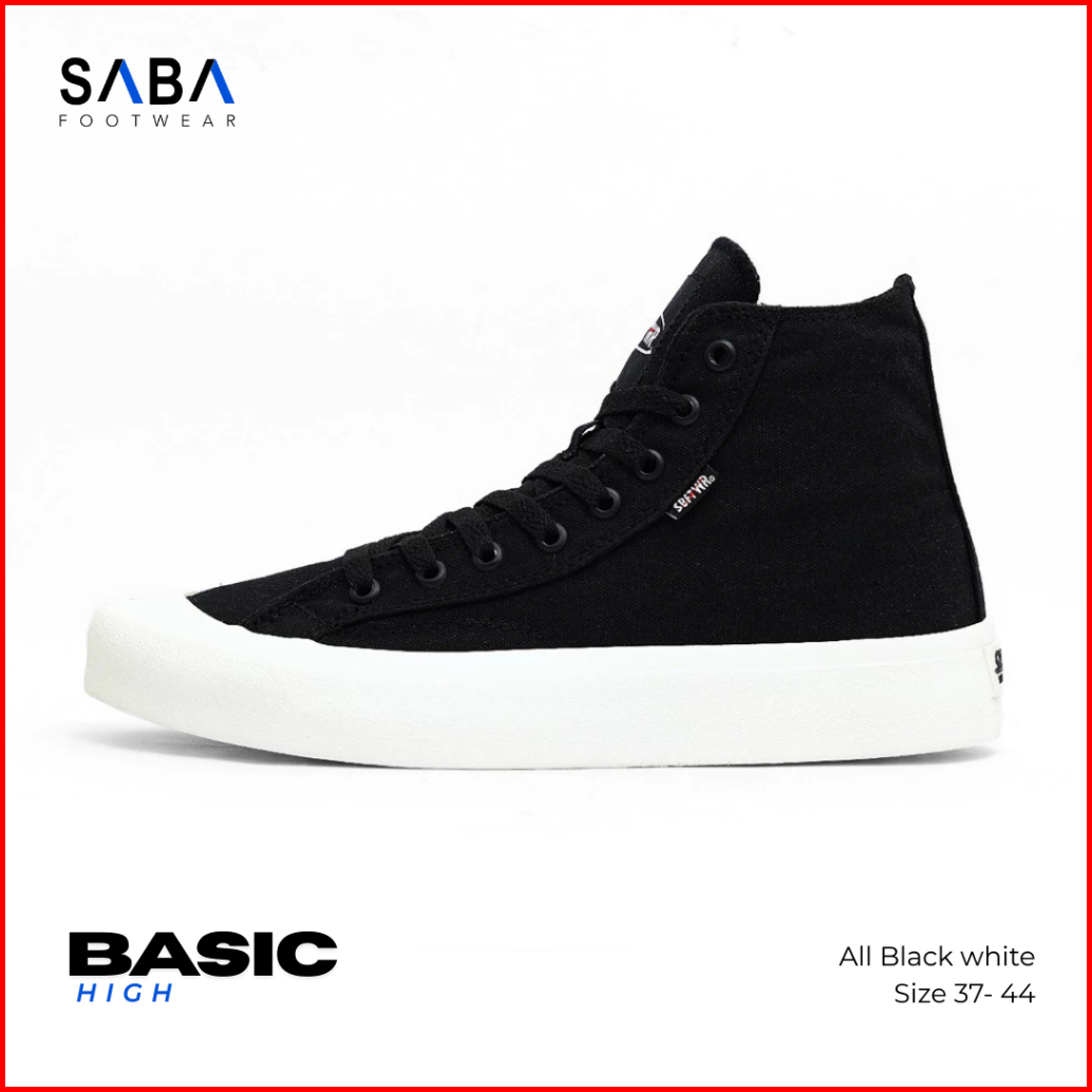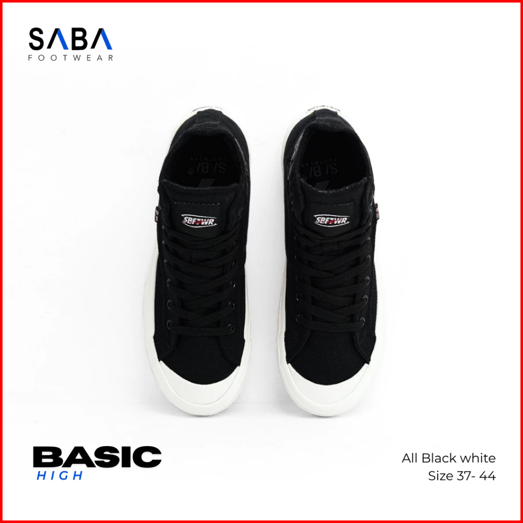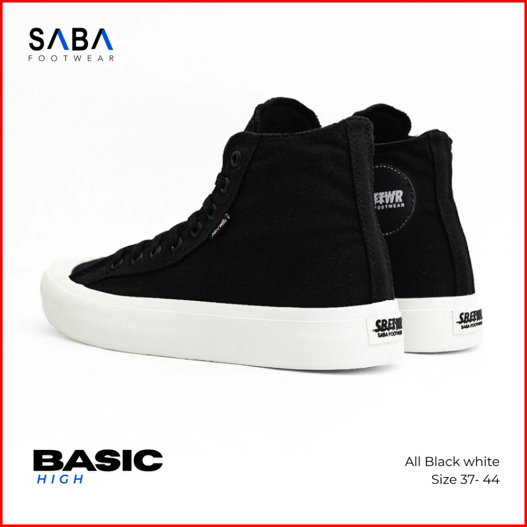 Saba Basic High All Black White - Sepatu Sneakers Casual Pria Wanita Original 100 Bs 01