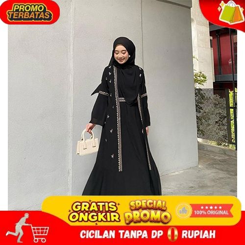 GRATIS ONGKIR Safwa Abaya Dress Ceruty Babydoll Aplikasi Bordir Cantik Gamis Abaya Wanita Terbaru Gamis Kondangan Simpel