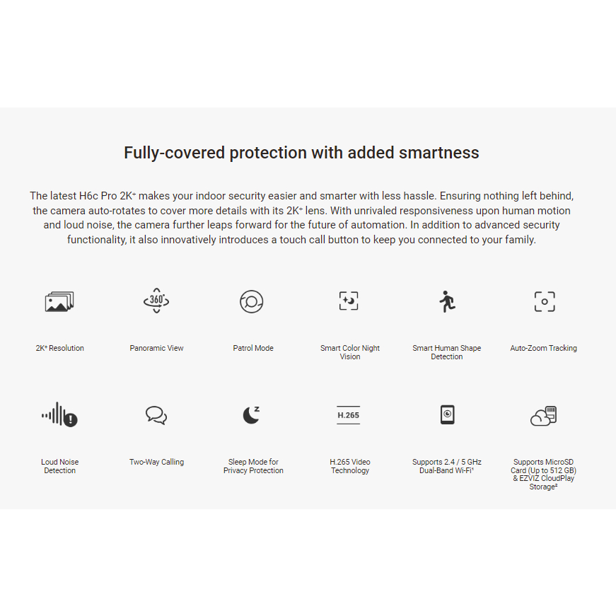 Ezviz H6c Pro 4MP 2K+ Smart Home Wifi Pan Tilt IP Camera CCTV Indoor 1440p