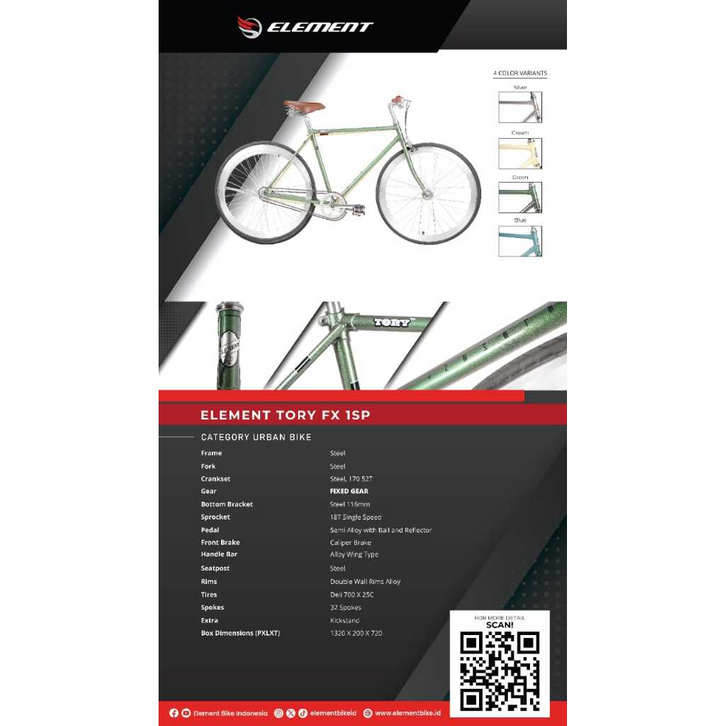 [NEW] Element Sepeda FIXIE 700c TORY FX Fixed Gear Rem Torpedo