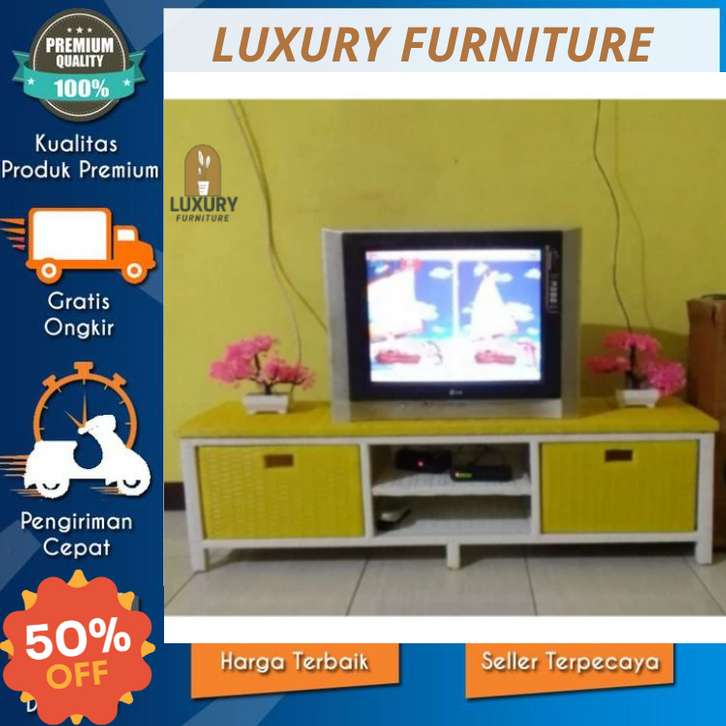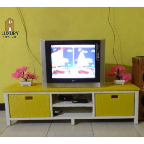 MEJA TV MINIMALIS MODERN PLASTIK ROTAN AESTHETIC SINTETIS
