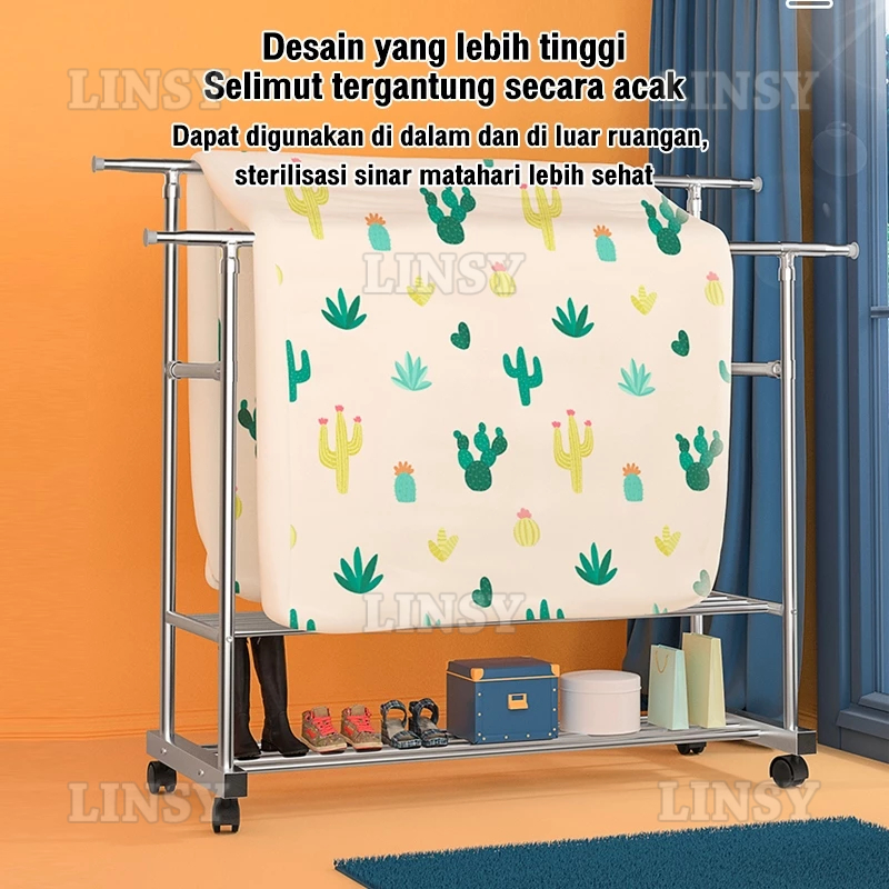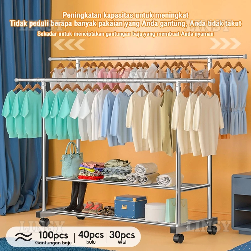 Jemuran Baju Double Pool / Stand Hanger Besi Stainlees / Rak Gantungan Baju Serbaguna Jemuran Baju Stainless Jumbo