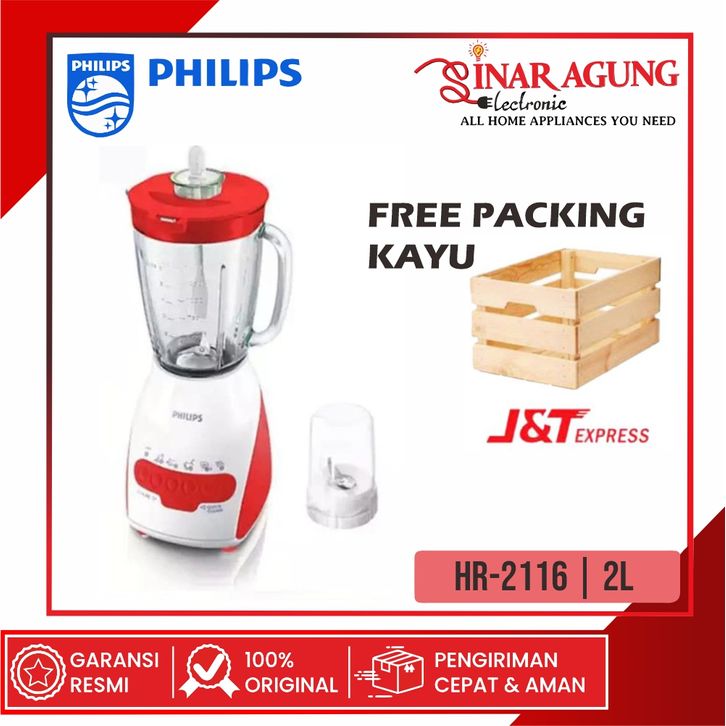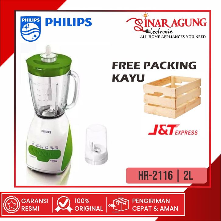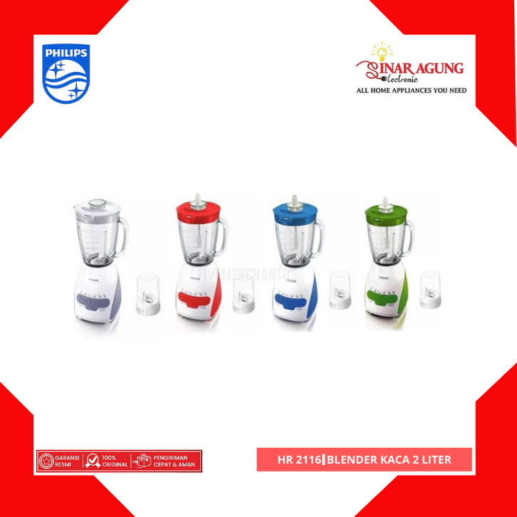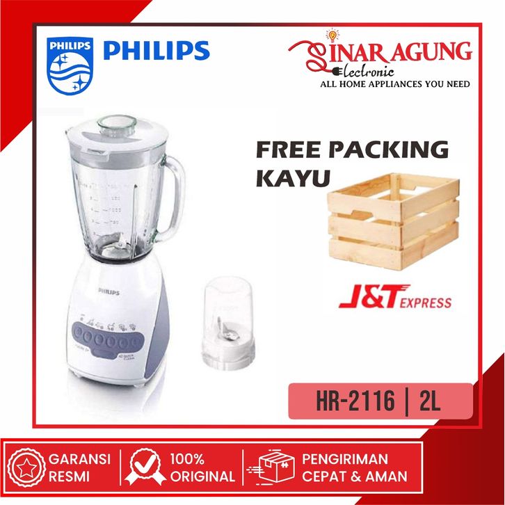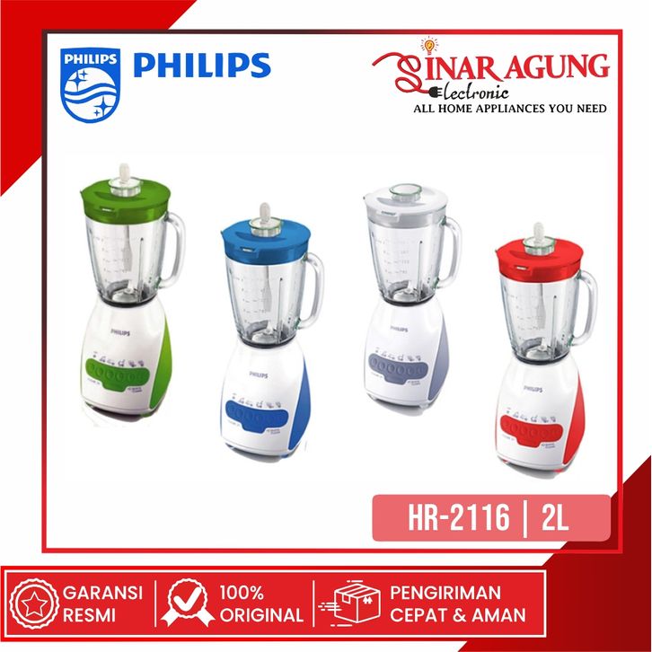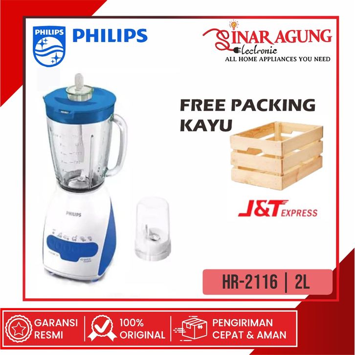 PHILIPS BLENDER HR 2116 2 IN 1 / HR2116 2 LITER 350 WATT KACA PHILIP MIXER TERMURAH OFFICIAL STORE