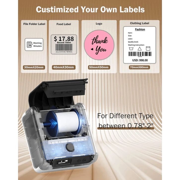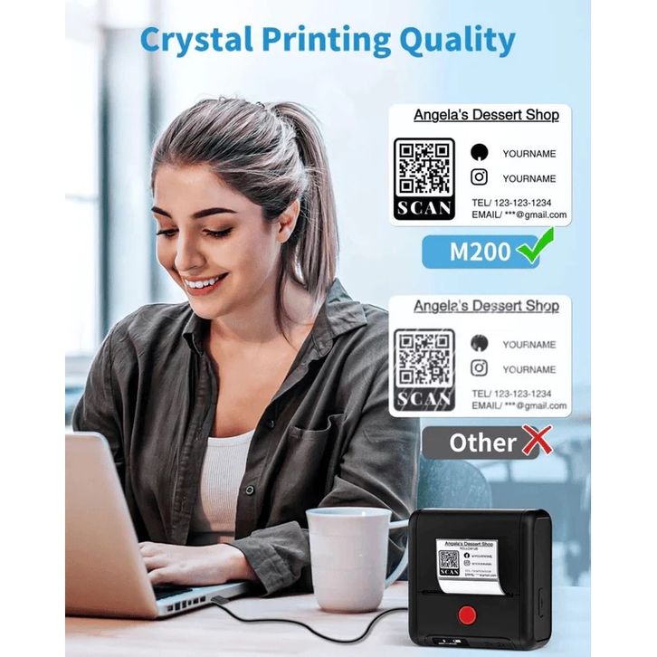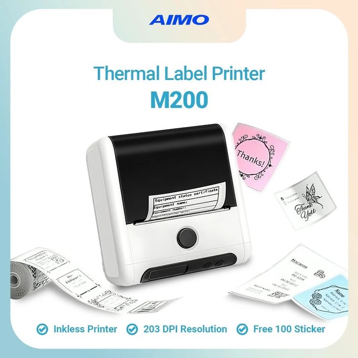 JAYA STORE/AIMO M200 Pencetak Label Thermal Printer QR Code Barcode Portable Bluetooth Printer Label Inkless Tanpa Tinta