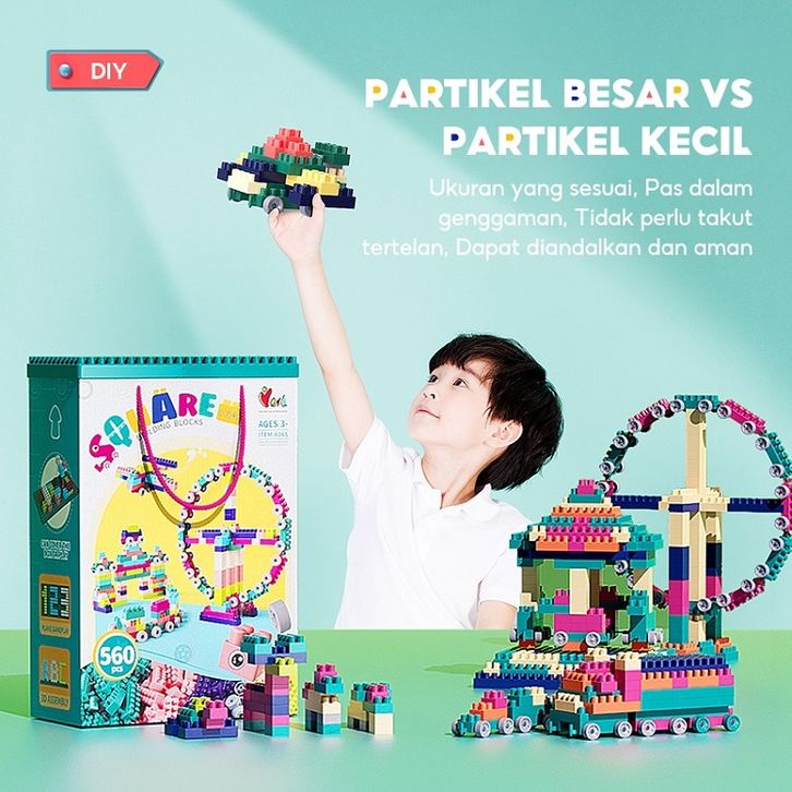 Mainan Brick Balok Susun Anak DIY 560pcs Bahan ABS Kuat Tahan Lama / DIY fun small square granule