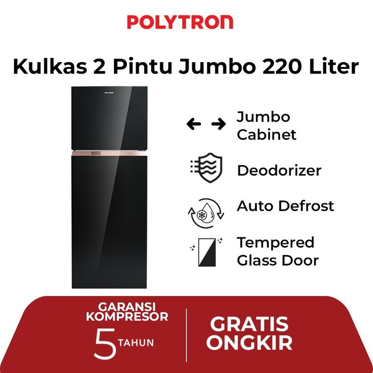 Polytron Kulkas 2 Pintu 220 L Series PRW 23MNX/PRB 237PR/PRB 237LB/PRW 23VX/PRW 23MOB/PRM 23DRX | Kulkas Sharp 1/2 Pintu