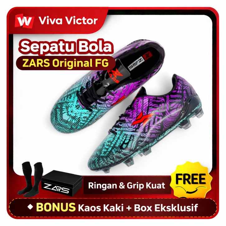 [Mall] Sepatu Bola ZARS Original FG – Ringan & Grip Kuat – Free Kaos Kaki + Box Eksklusif