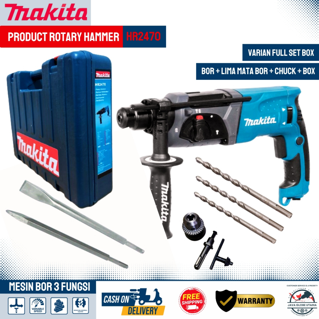 Bor Sds Makita Hr2470 3 Fungsi (Bor Drill) New 100% Pilihan Bisa Dengan Toolbox
