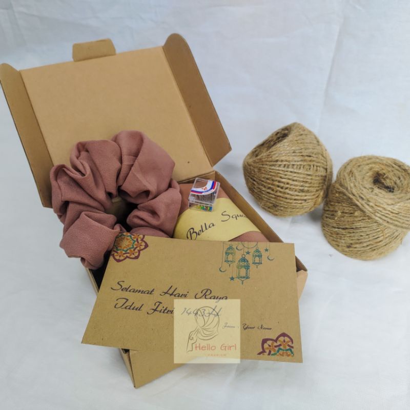 GRATIS ONGKIR HAMPERS GIFT BOX HIJAB TERMURAH ISI HIJAB BELLA SQUARE DAN SCREUNCHIE