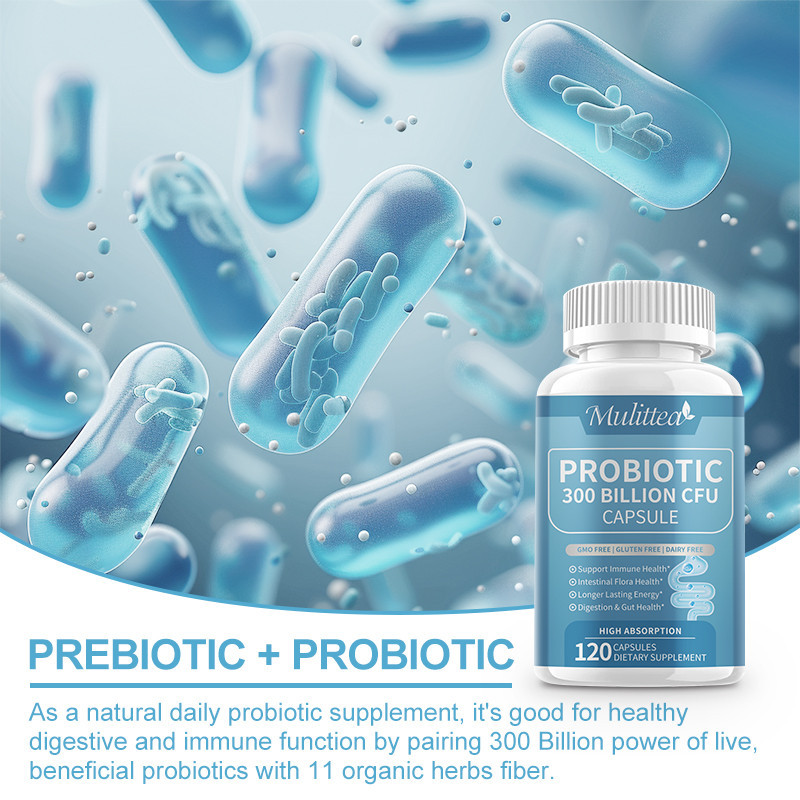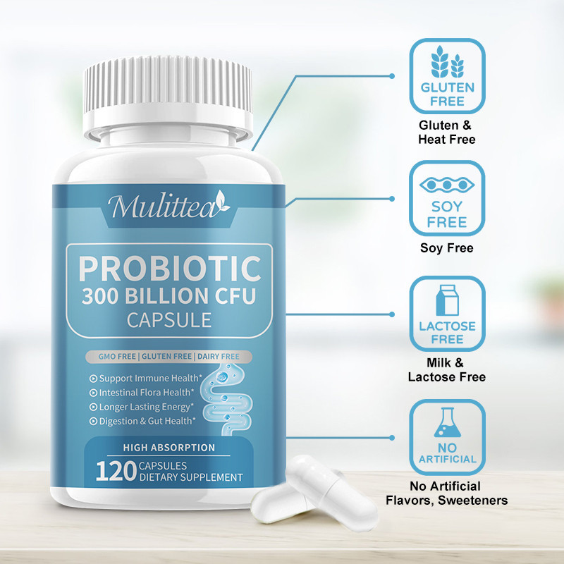 { ORIGINAL } MULITTEA PROBIOTICS 300 BILLION CFUS SUPPLEMENT CAPSULES WITH CRANBERRY FOR DIGESTIVE HEALTH ,PROMOTING INT