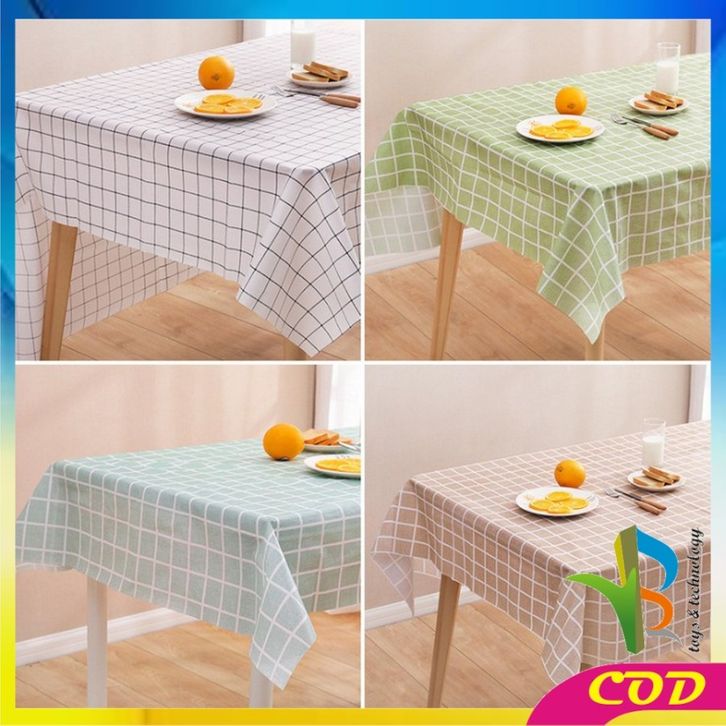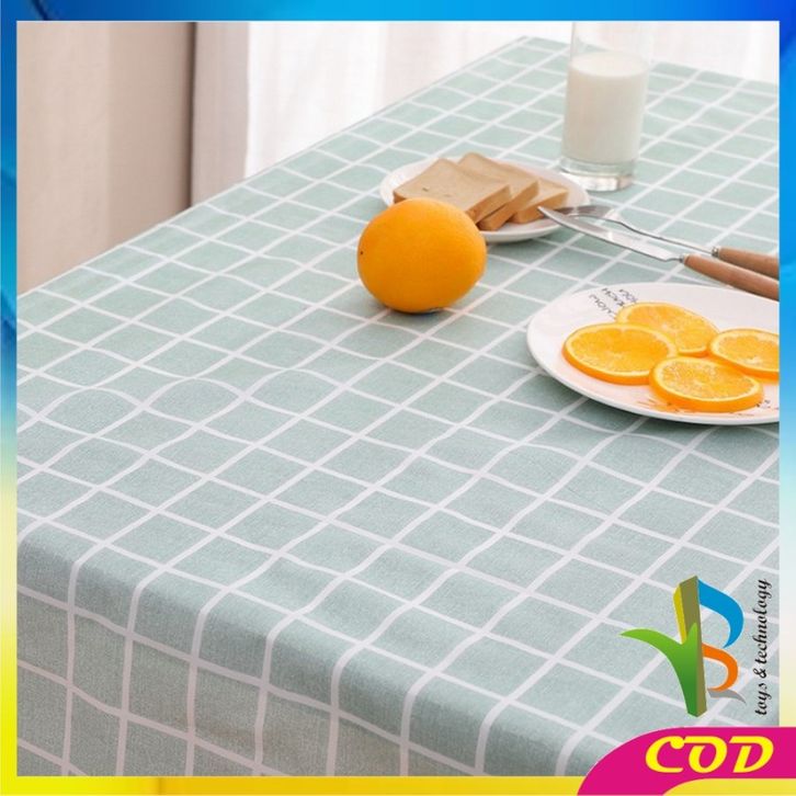 RB-C288 Taplak Meja Anti Air Motif Kotak-Kotak Bahan PEVA / Alas Meja - BIRU MUDA, 137 x 90cm
