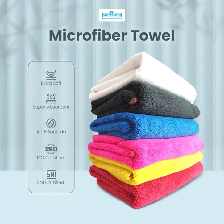 Handuk Mandi Dewasa Microfiber Mipacko Anti Bakteri Polos Menyerap Air - Hitam, 50x100cm