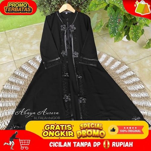 [Mall] (READY) ABAYA AURORA - gamis hitam Jettblack temboro