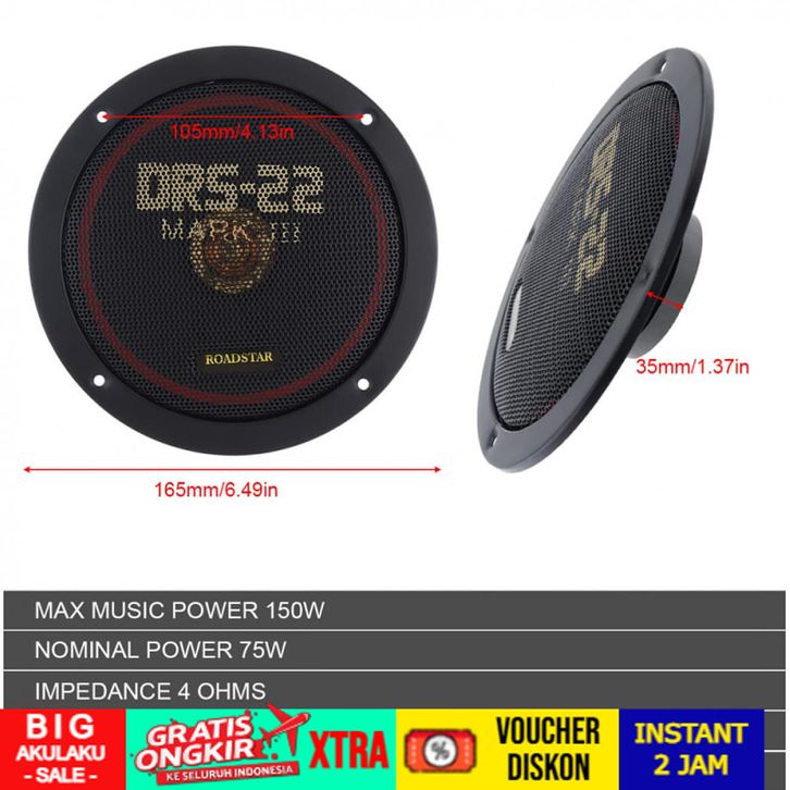 TANPA DP ROADSTAR Speaker Mobil HiFi 6.5 Inch 150W 2 PCS - DRS-22 - Black
