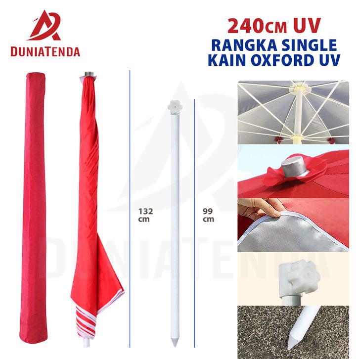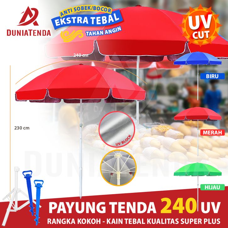 DT Payung Tenda 240 cm Payung Jualan Besar Jumbo Payung Pantai Taman Cafe Bazar Lapak dengan Sarung