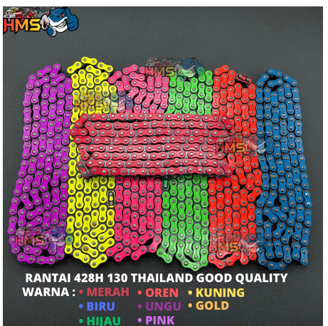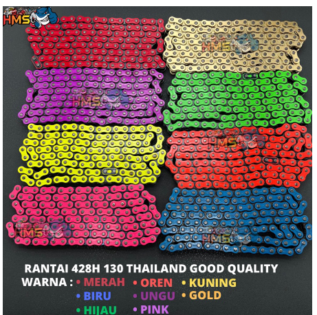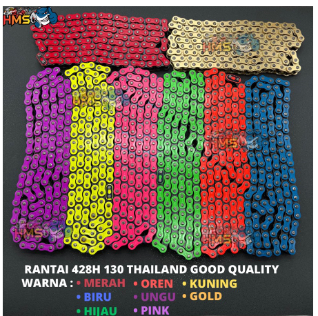 Rantai 428 H 428H 130L Thailand Bisa Buat Gear Sss 428 Tebal Warna Merah,Hijau,Pink,Ungu,Merah,Ungu,Oren,Gold,Emas THAIL