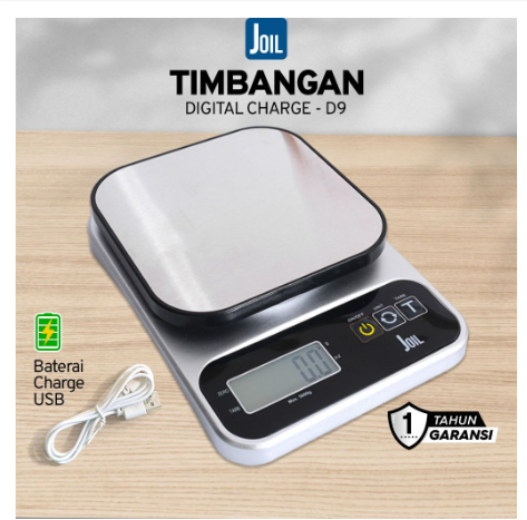 Joil Timbangan Dapur Digital 0.5gr/5Kg & 0.1gr/3Kg Stainless Steel dengan Tare & Chargeable - D9