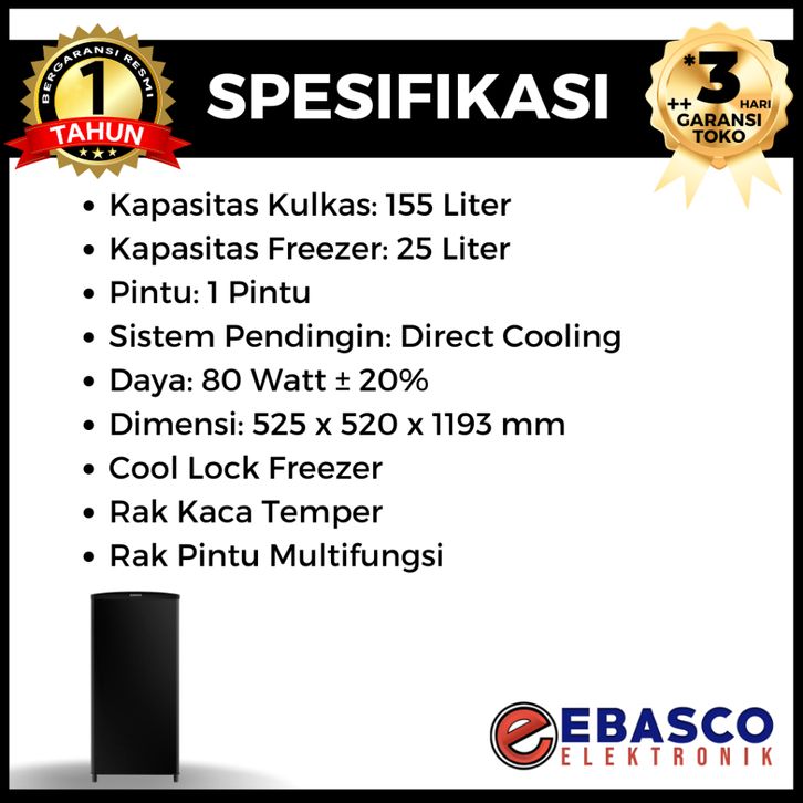 SANKEN SKV 188 ABB KULKAS 1 PINTU Kapasitas 180L Dengan Fitur Cool Lock Freezer - HITAM