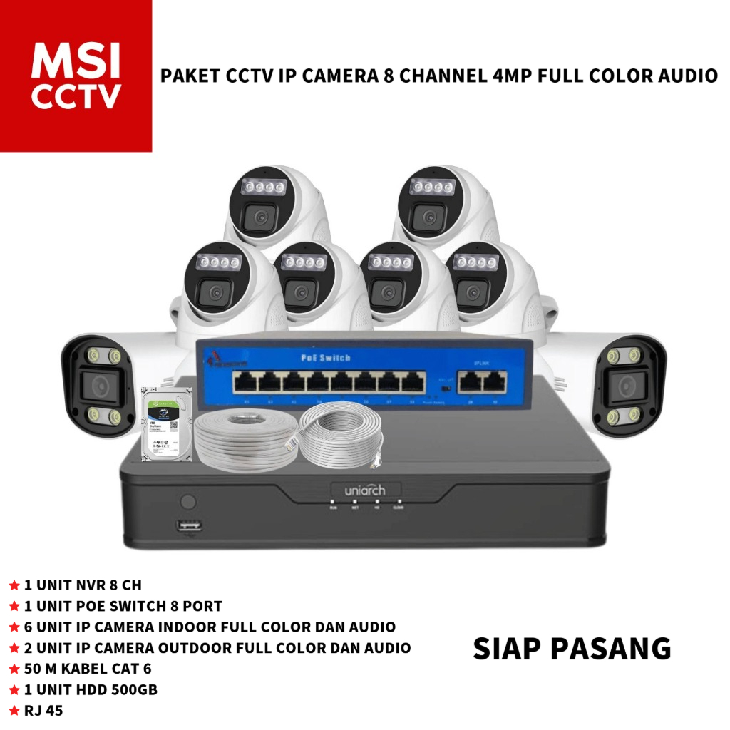 PAKET CCTV IP CAMERA 8 CHANNEL 4MP FULL COLOR AUDIO SIAP PASANG