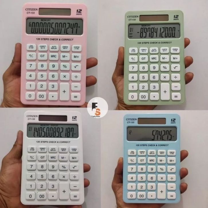 KALKULATOR FANCY WARNA WARNI CALCULATOR CITIZEN 555N 555 N 555 C 555 COLOUR SERIES 12 DIGIT CHECK ULANG CHECK