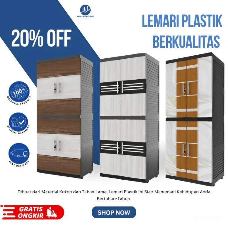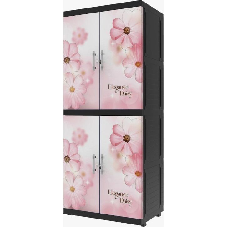 Lemari Plastik 4 Susun Jumbo Berkualitas 2025 Lemar Plastik 4 Pintu Gantungan Dengan Kaca Dan Kunci Lemari High quality
